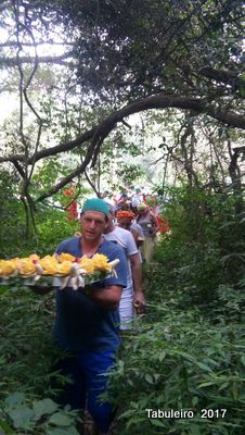 A entrega deste tabuleiro é realizada anualmente, momento de intensa fé onde todos os presentes entram na mata virgem para chegar até o local onde o tabuleiro é colocado com cânticos para os orixás da água. Na ocasião Pai Alexandre de Oya e Pai Ronie de Ogum também colocaram axé para Ogum e para Oya dentro da mata.