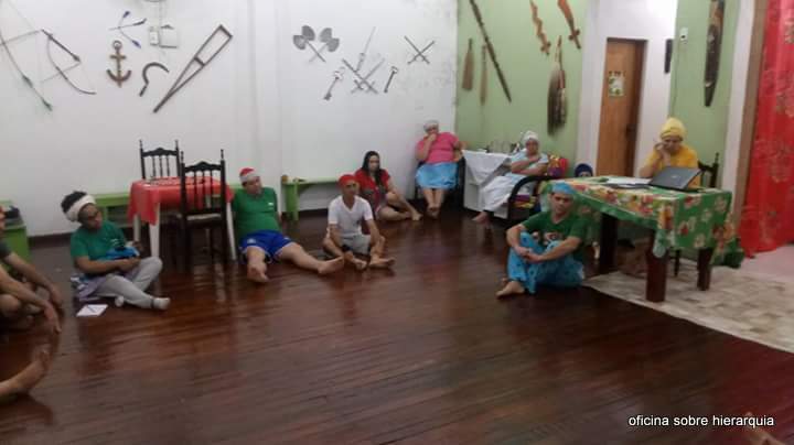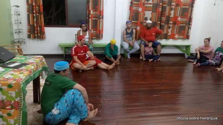 Pai Ronie iniciou a oficina falando que existe na religião uma hierarquia iniciática, de conhecimento, de axé que temos, que em muitos lugares é imposta, aqui no Ilê Orixá ela é conquistada. Nunca se pode impor respeito, e nunca se pode impor tempo de religião como instrumento de opressão. Tempo de religião nos trás responsabilidade, mas o conhecimento se adquire com a prática e responsabilidade.