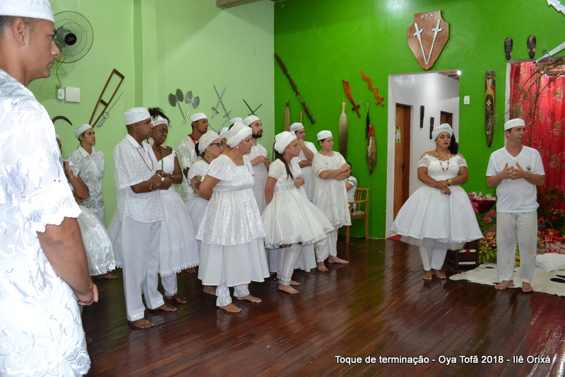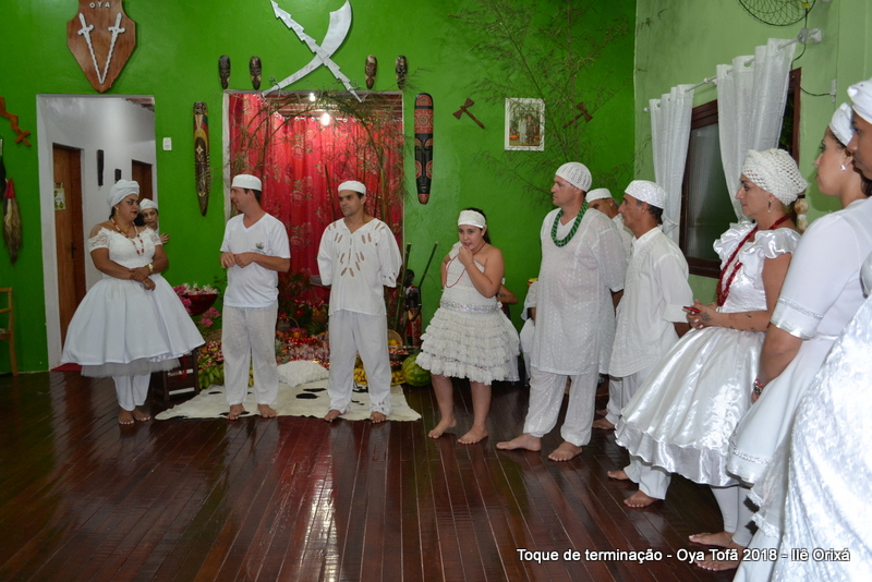Pouco antes de inciar a festa de terminação, no dia 7 de abril, as 20 horas, Pai Alexandre conversou com os filhos do axé sobre a gratidão pela ajuda de cada um durante a obrigação de Oya Tofã e seus filhos, em especial Volnei de Ogum e Antonio de Oya que estavam realizando assentamento de orixás.