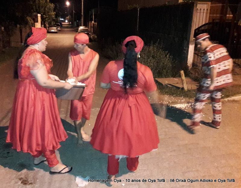 Foi um momento de intensa religiosidade e fé, onde dezenas filhos de santo e alguns amigos acompanharam a saída do Ilê Orixá até o cruzeiro próximo ao Ilê para o reverenciar diretamente na rua, mesmo local de onde o quatro pé que se corta para Exú Bará Lodê sai até chegar no seu local de culto.