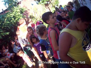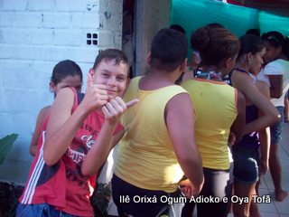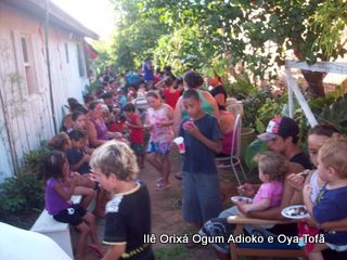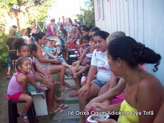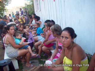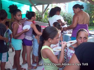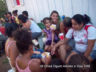 toda religião, deve ajudar de alguma forma. São atitudes como estas que irão fazer nossa religião ser respeitada pela sociedade. Criticamos outros credos, somos criticados pelos outros. Mas o que fazemos de positivo? O que a sociedade sabe de dentro de nossos terreiros? Cada um de nós, é responsável pela imagem que deixamos transpassar. Não adianta falar bonito, dizer que se faz o bem, se nada se faz para mudar. Para mudar a primeira atitude deve ser fazer, quem quer fazer faz.