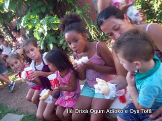 A alegria do Natal não seria completa se fossem distribuídos apenas brinquedos, pois é uma data onde todos se reúnem, pensando nisso o Ilê Orixá preparou um lanche especial a todos que participaram do Natal Social, com direito a cachorro quente, torta, bolo, brigadeiro, branquinho, gelatinas entre outros doces e guloseimas que foram servidas.