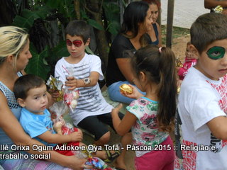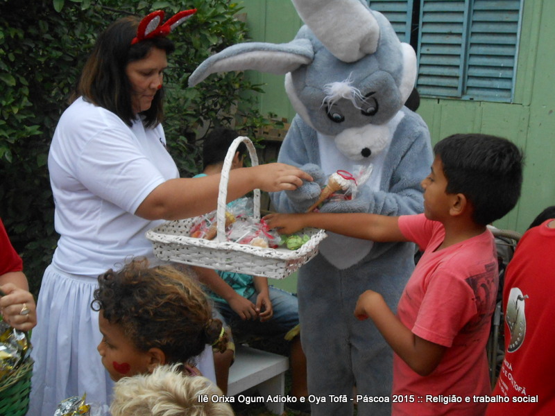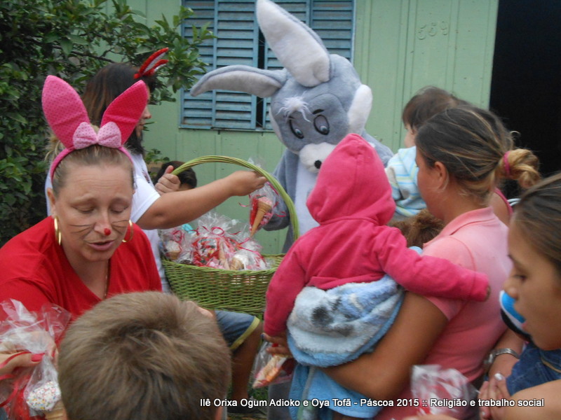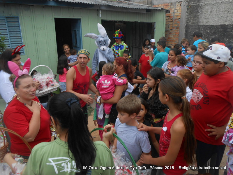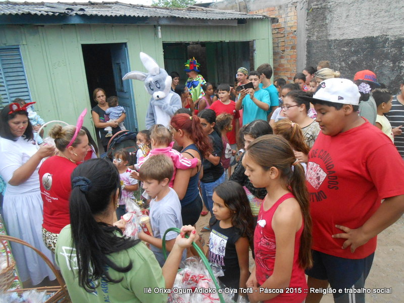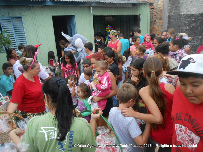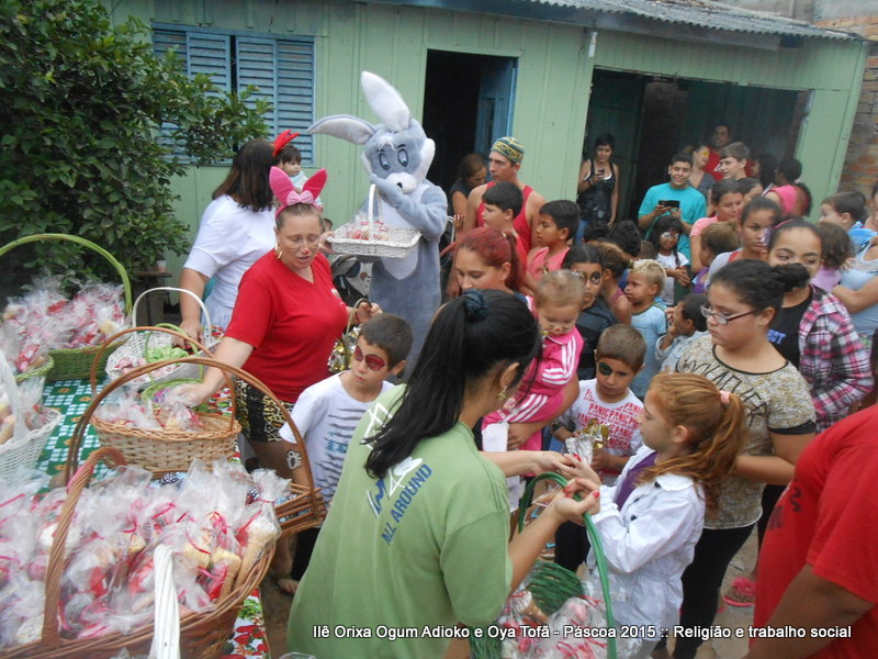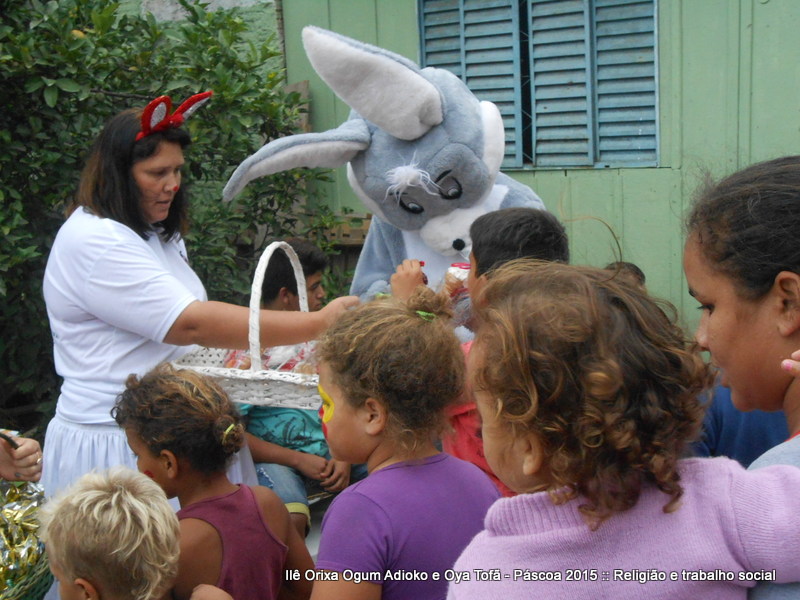 Em 2015 é o quarto ano que o Ilê Orixá realiza festa de Páscoa na comunidade, levando um pouco de solidariedade e carinho as crianças que frequentam o axé nestas atividades.