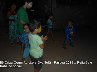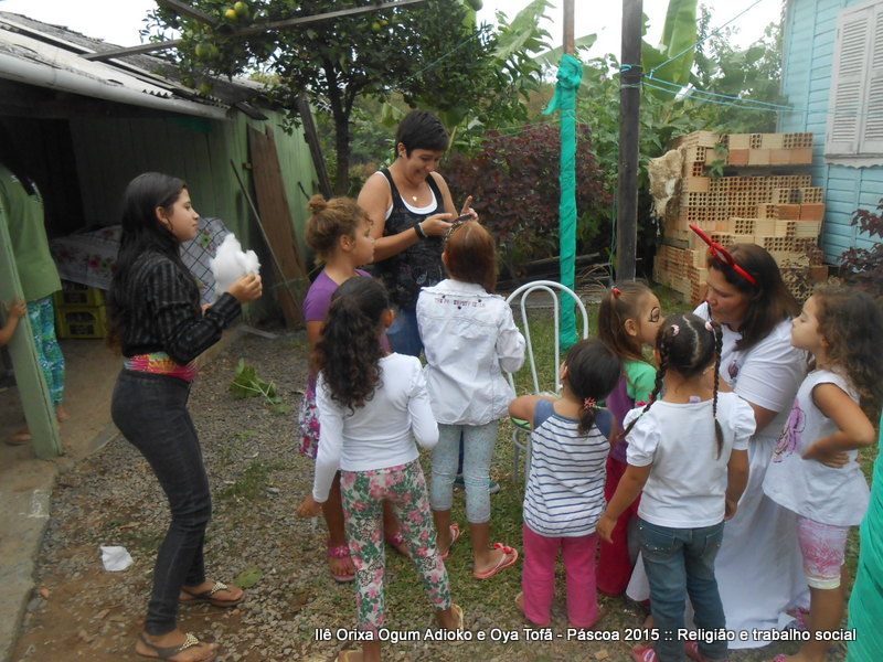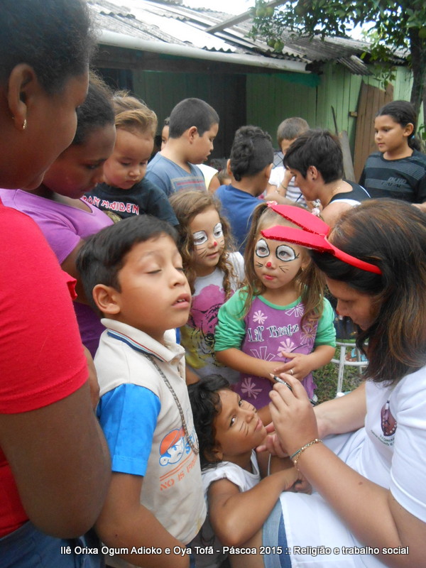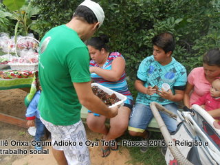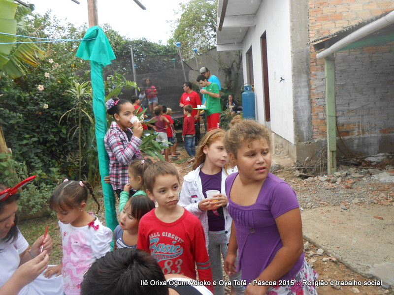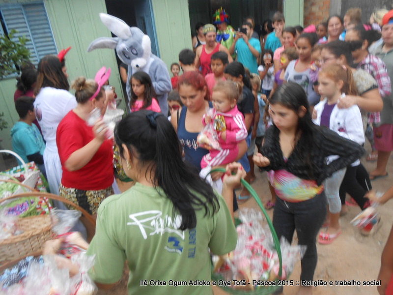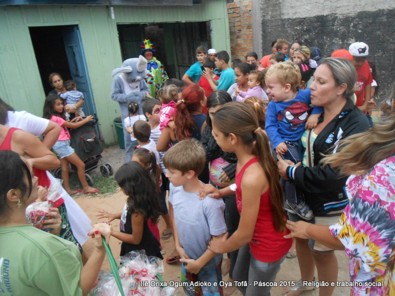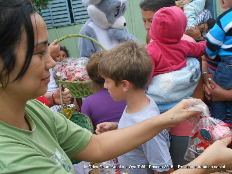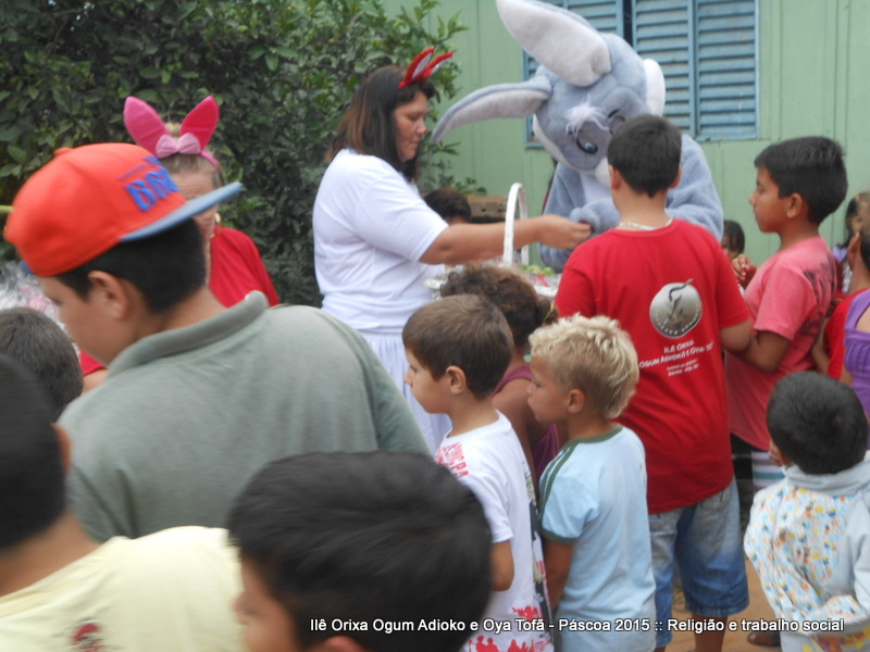 Em 2015 é o quarto ano que o Ilê Orixá realiza festa de Páscoa na comunidade, levando um pouco de solidariedade e carinho as crianças que frequentam o axé nestas atividades.
