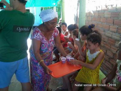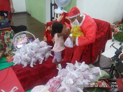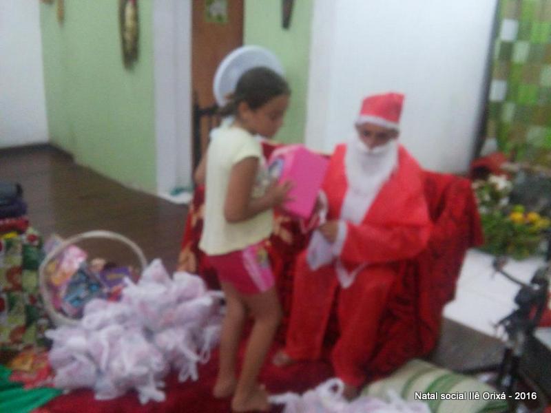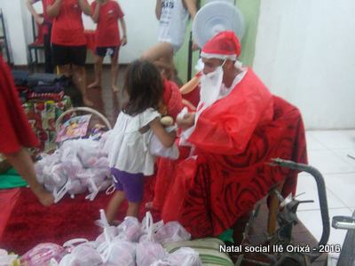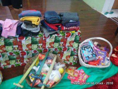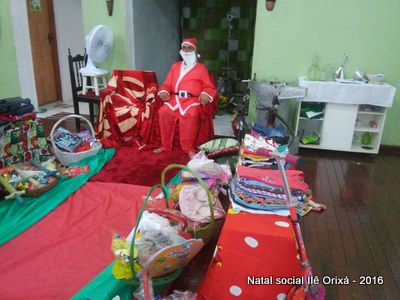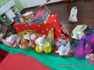 Nesta festa de natal além de doces e brinquedos também foram ditribuídas dezenas de peças de roupas para crianças e adultos, fruto da arrecadação entre os filhos do axé, que se uniram para realizar uma linda festa de natal. Esta festa não é uma data religiosa da casa, é uma inclusa dentre as festividades sociais da casa, que possui como um dos seus pilares as atividades sociais integradas as ações religiosas.