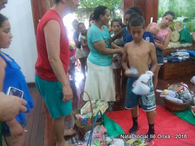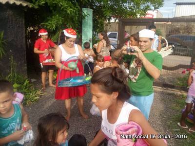 Ocorreu no dia 23 de dezembro mais uma festa de natal solidário dentro das dependências do Ilê Orixá, foram atendidas dezenas de crianças oriundas da Vila Rica e Vila Maria, próximas ao Ilê Orixá, que está localizado no bairro novo mundo, na cidade de Gravataí. E o natal que já ocorre desde a fundação do Ilê no ano de 2011, todos os anos já é esperado pelas crianças. E nestes 6 anos o Ilê Orixá mostra que sim é possível cada um de nós fazer a sua parte e dedicar um pouco de tempo para ajudar o próximo.