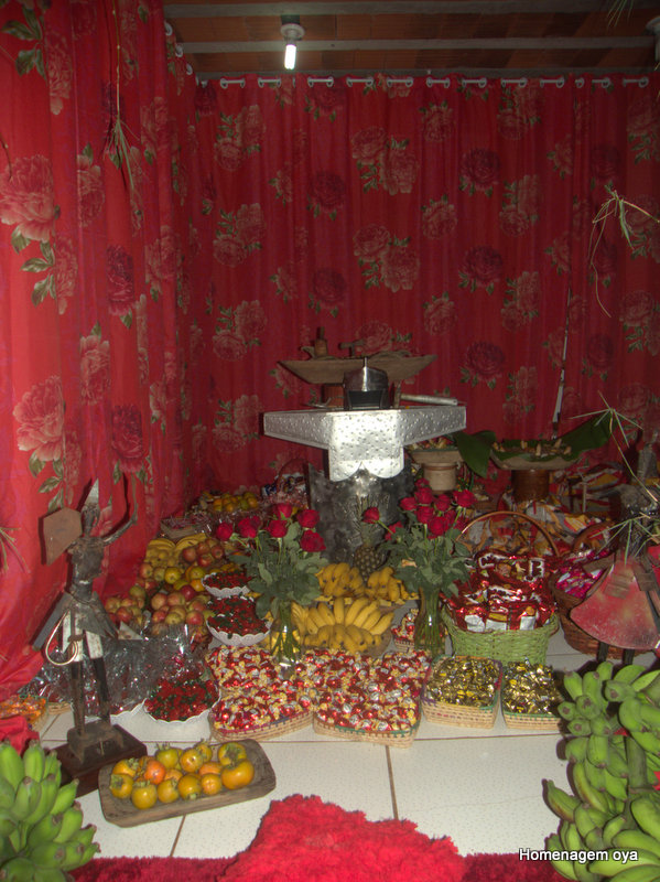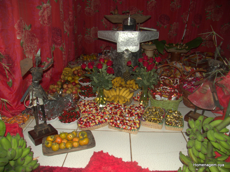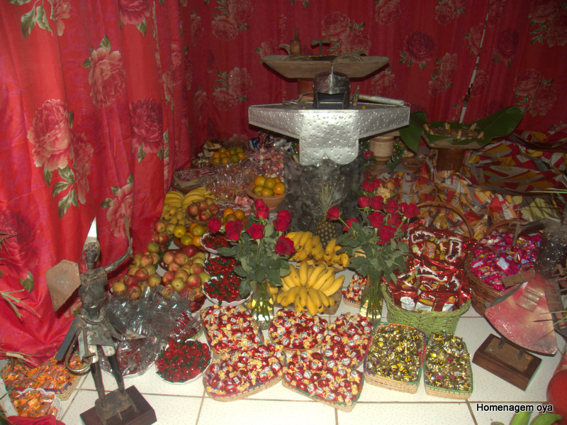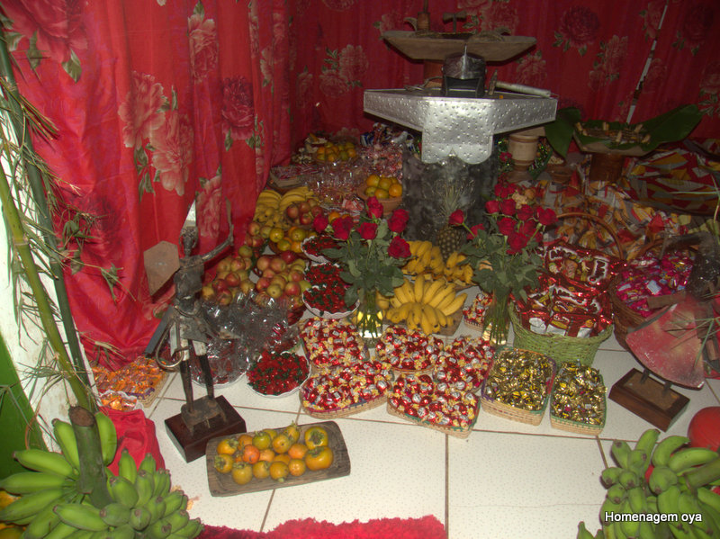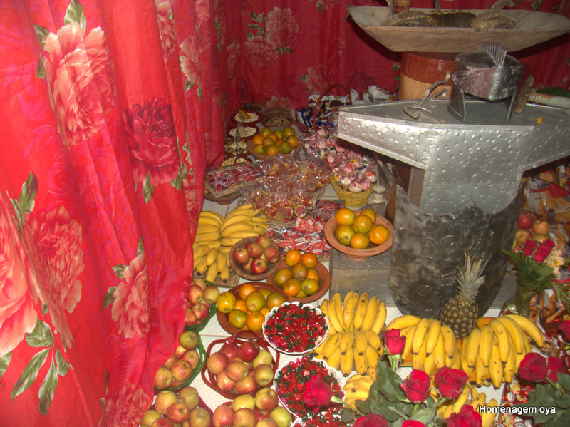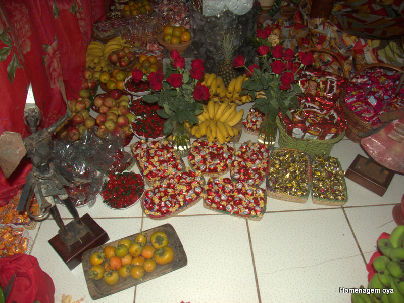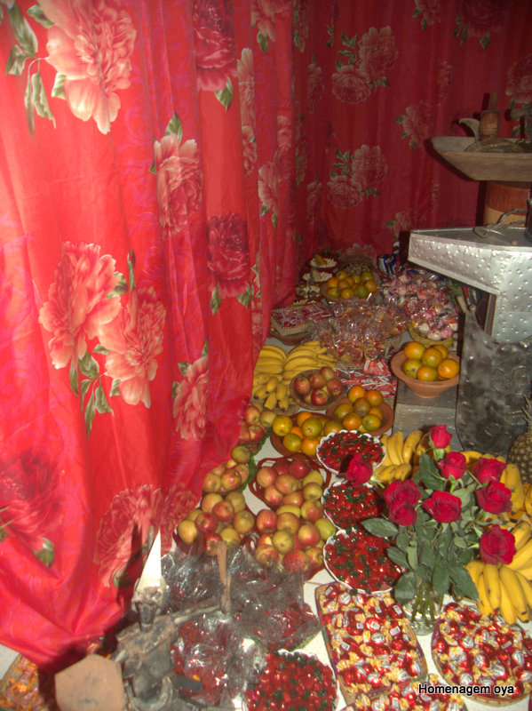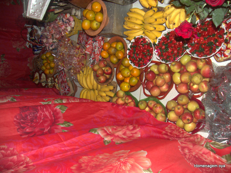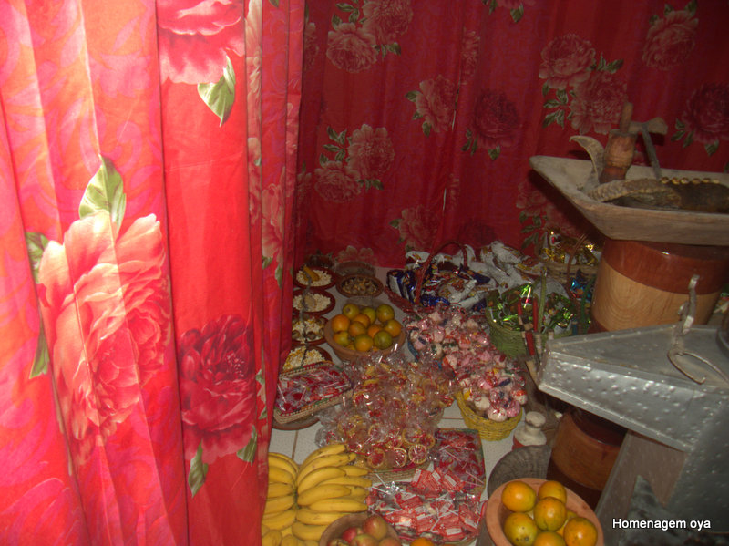 Na decoração além de doces e frutas o carinho e a fé de cada um que depositou seus agradecimentos e pedidos aos orixás.