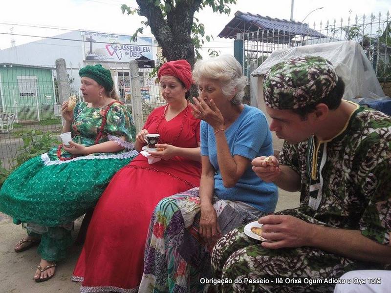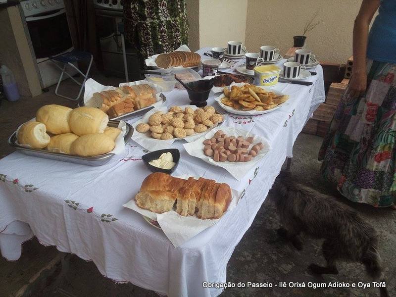Em seguida todos se dirigiram ao Ilê de Xangô e Oya, na cidade de Cachoeirinha, onde fomos recebidos por Fernanda de Xangô Aganju, Júlia de Oya e Ana de Oxalá Orumilaia, que recebeu aos filhos com uma mesa de café pronta, distribuindo o axé, o axé da mesma origem religiosa de Pai Alexandre e Pai Ronie.