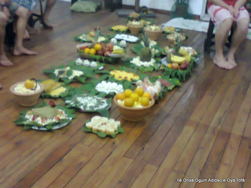 Ao Orixá Xangô utilizamos 6, 12 ou 24 bananas esmagadas, com farinha de mandioca crua, mel e dendê. Servimos em uma gamela e pode estar sobre uma folha de bananeira. Este ecó também pode ser utilizado como axé para Xangô, colocando no quarto de santo, podendo ainda ter bananas em múltiplo de 6 na gamela. O ideal é que este ecó seja despachado ao pé de uma bananeira.