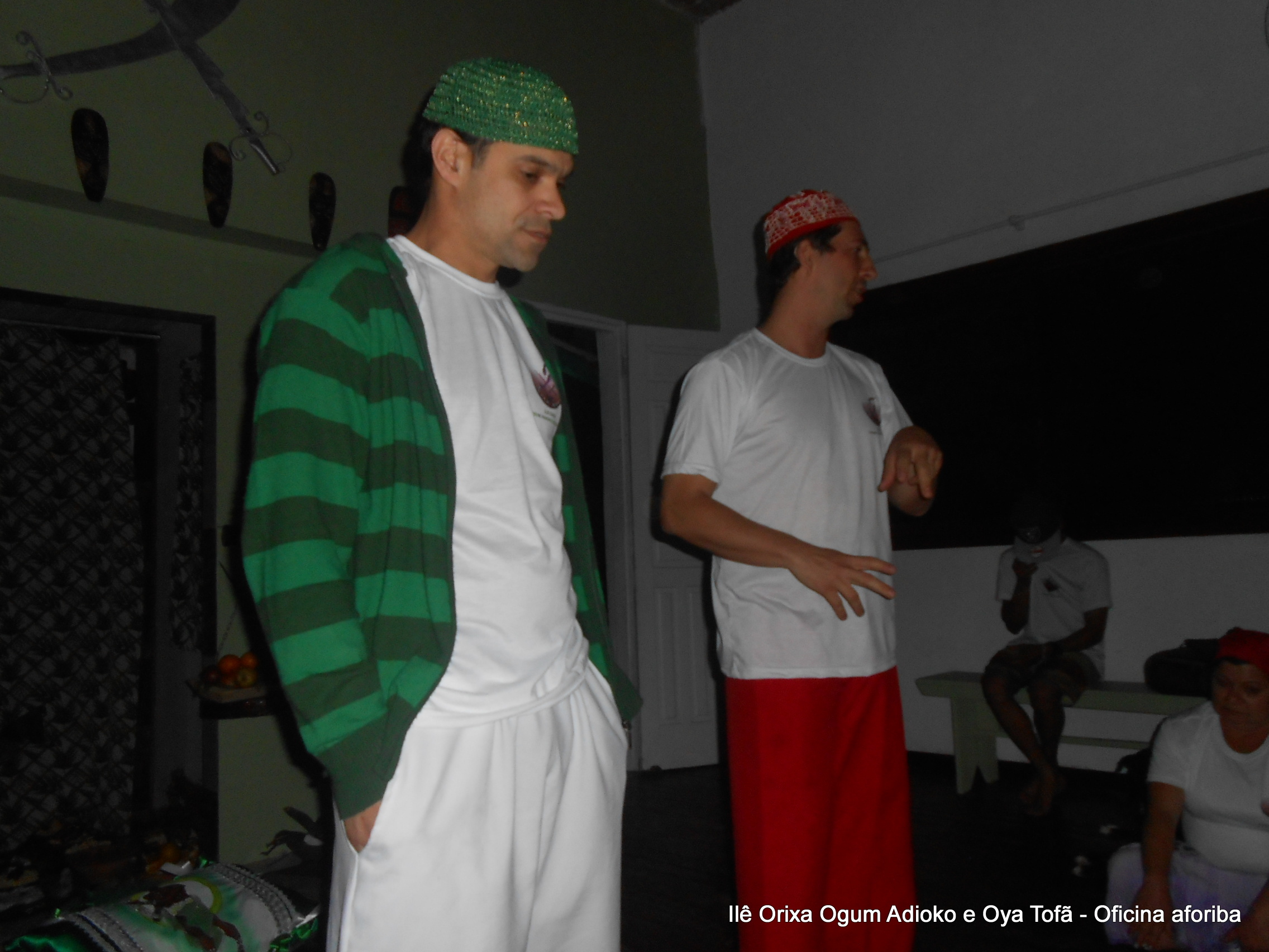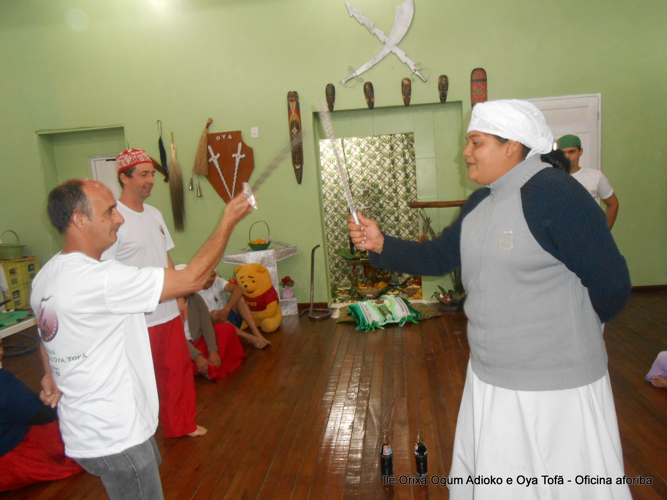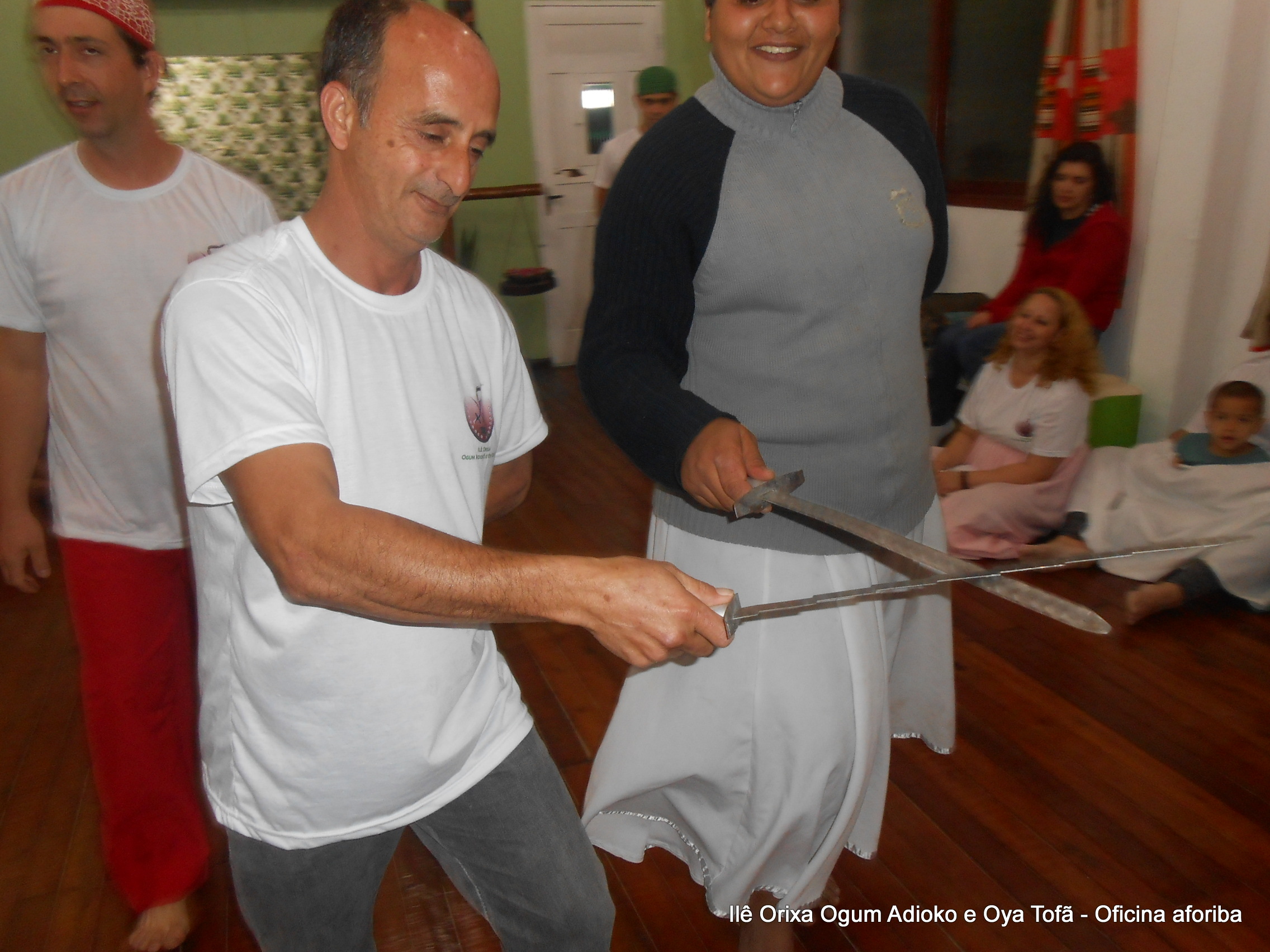 Pai Ronie de Ogum e Pai Alexandre de Oya agradecem a todos os filhos do axé que participara a oficina, e em especial a Sheila de Bará e Cleber de Ossanha por fazerem a encenação dos Orixás Ogum e Oya e permitir que este aprendizado fosse estendido a todos.