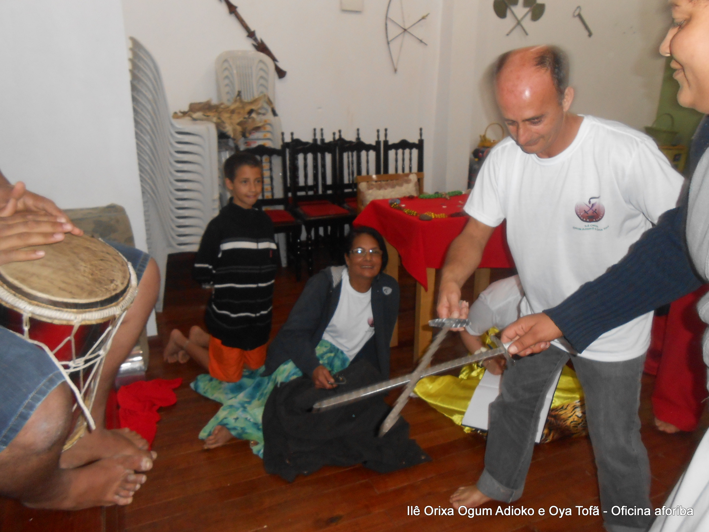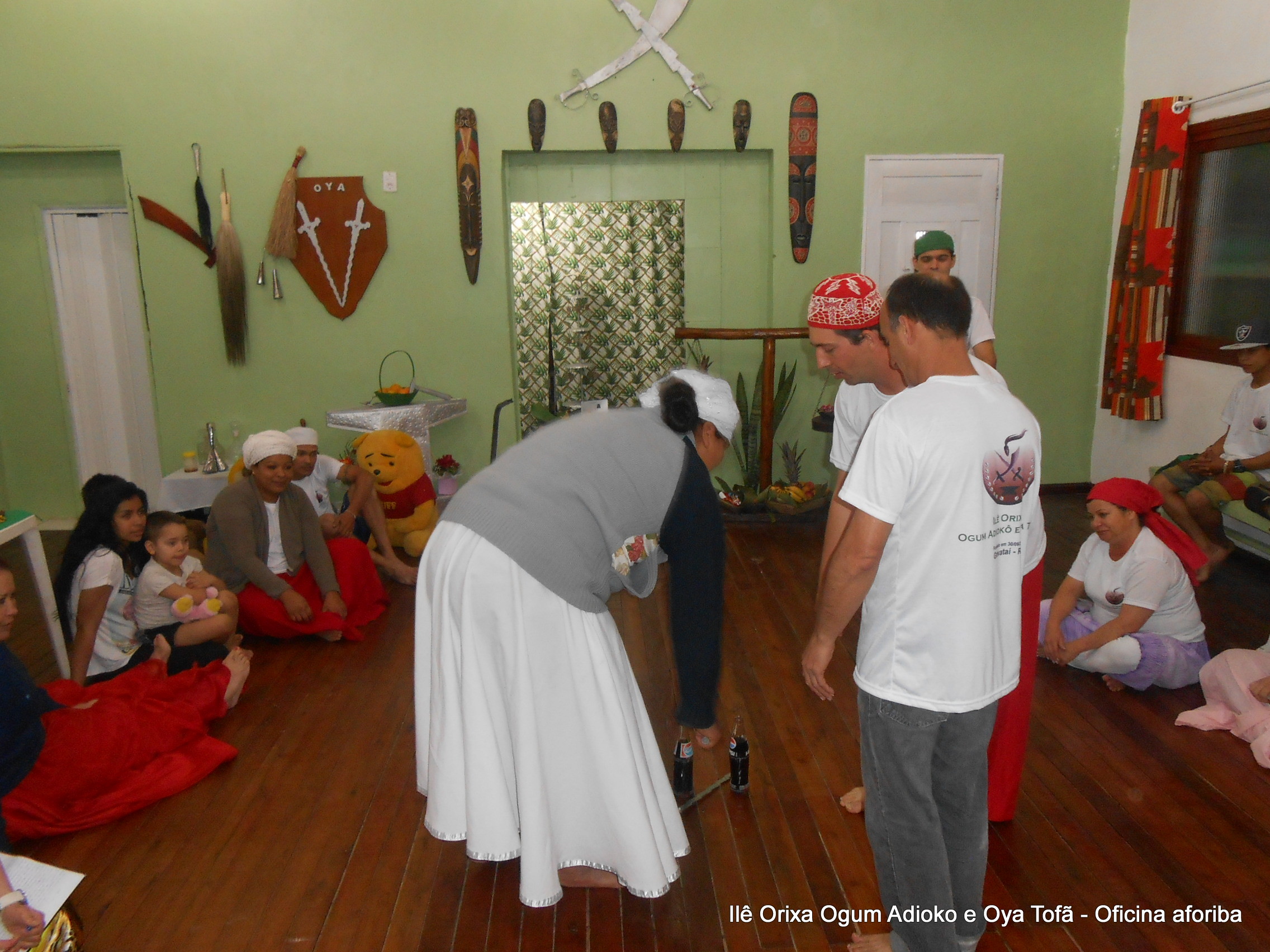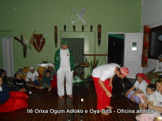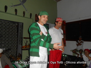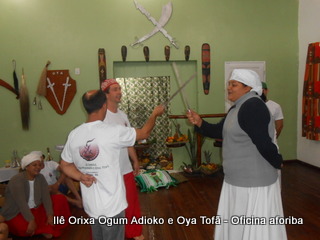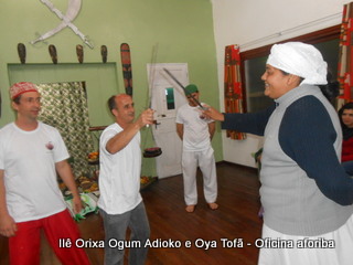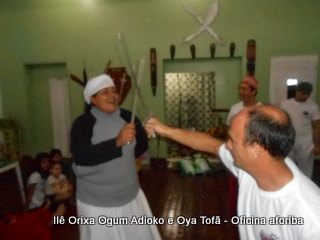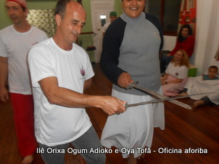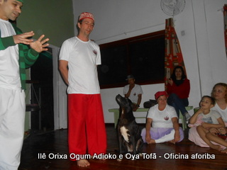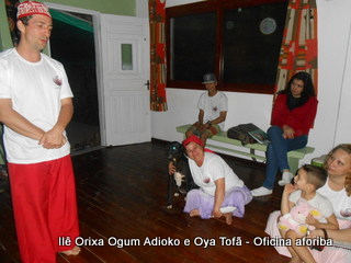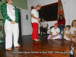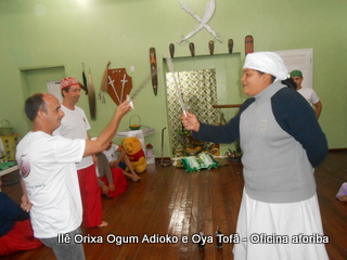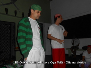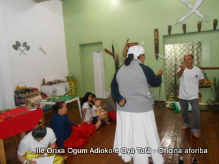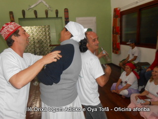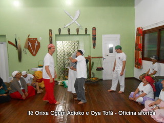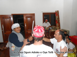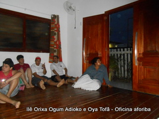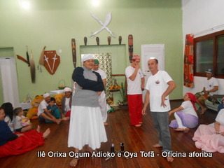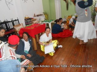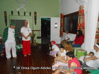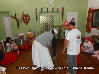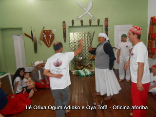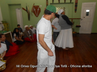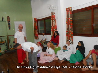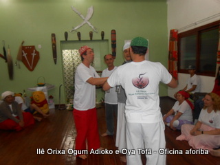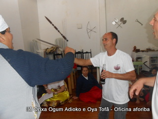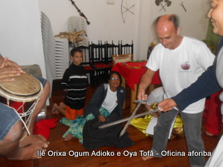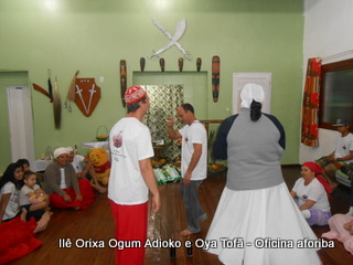 Na tarde do dia 04/10 Pai Alexandre de Oya Tofã conduziu Oficina sobre o ritual do aforiba aos filhos do axé, com a finalidade de esclarecer a todos como este funciona e de que maneira deve ser realizado. O Ilê Orixá, um axé de Ogum com Oya sempre terá em seus toques este ritual, dai a necessidade de fazer com que todos os filhos do axé o compreendam e saibam como funciona.