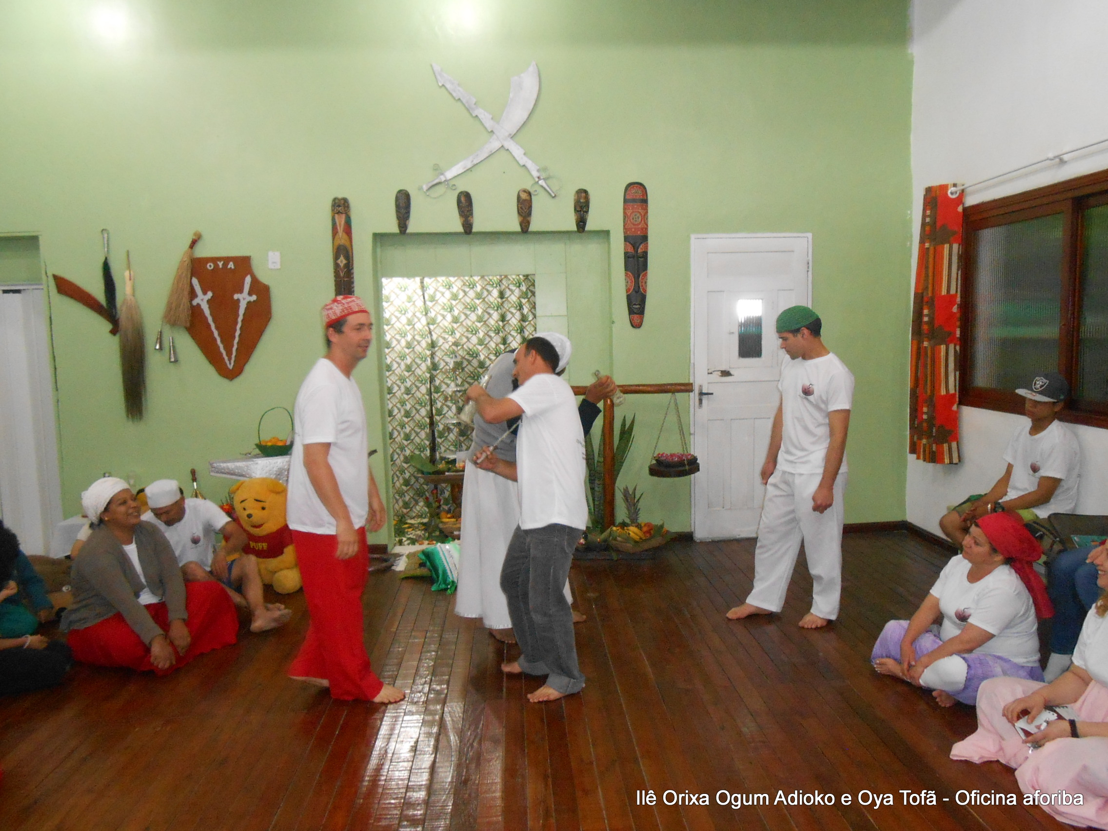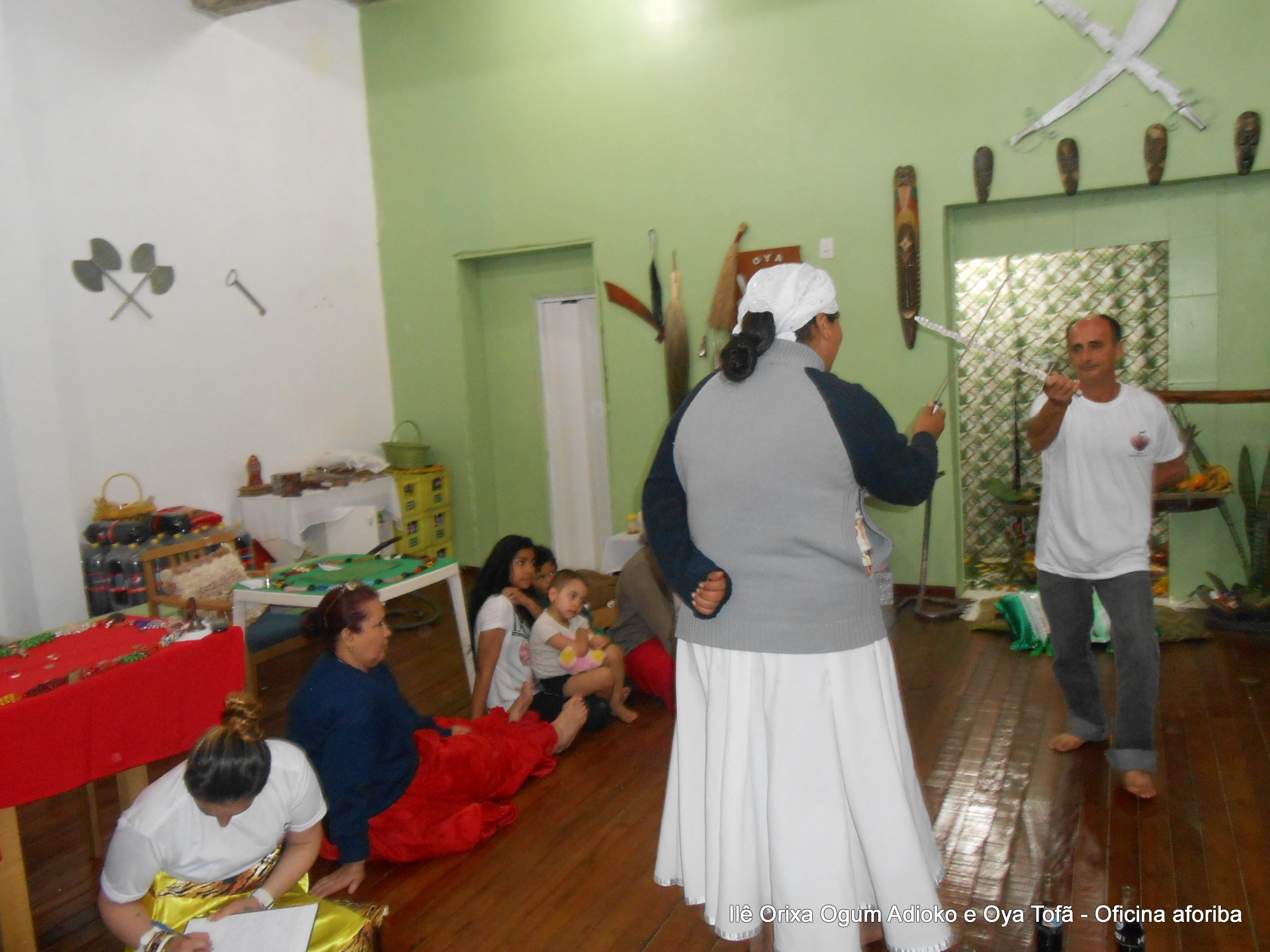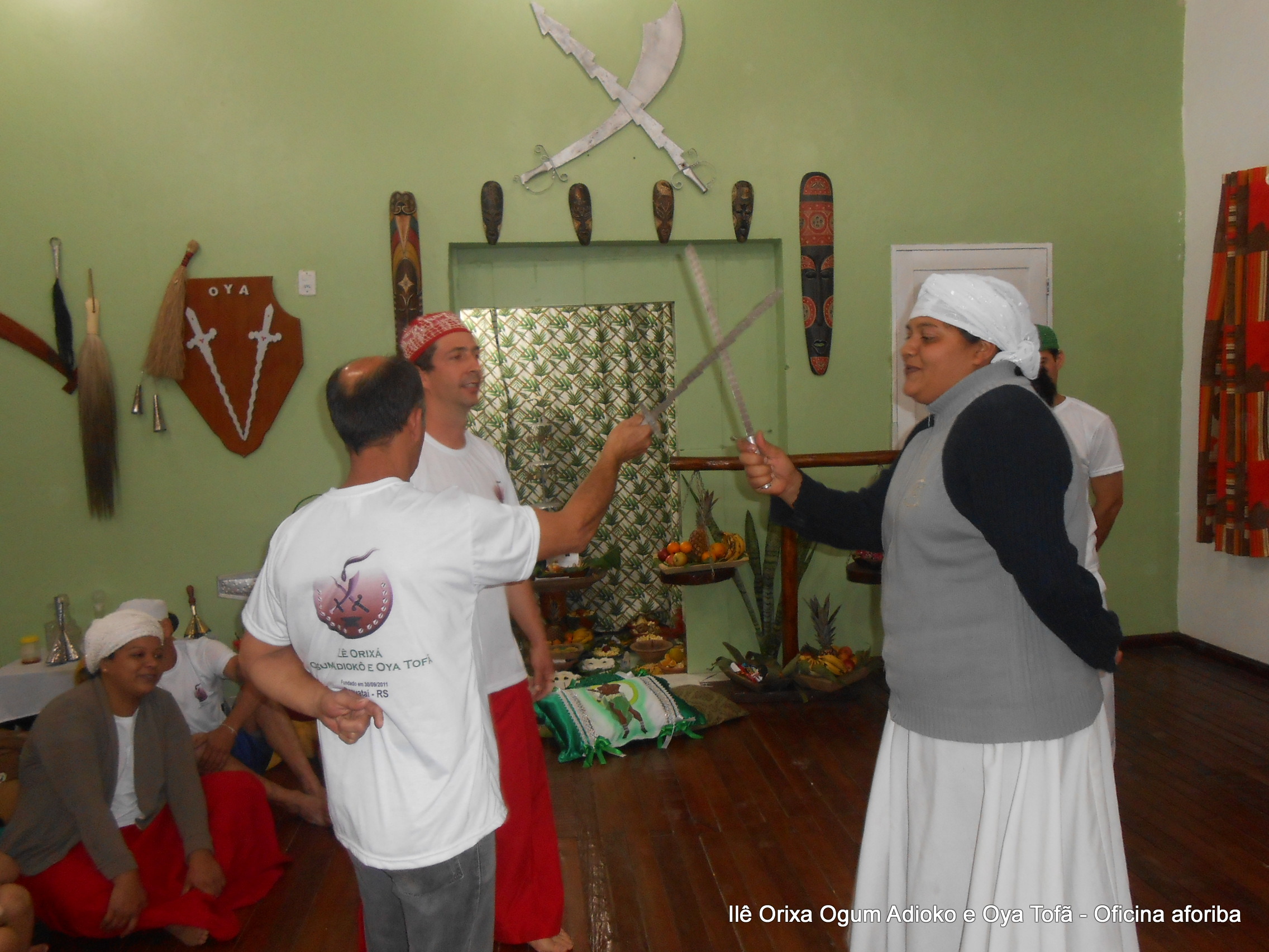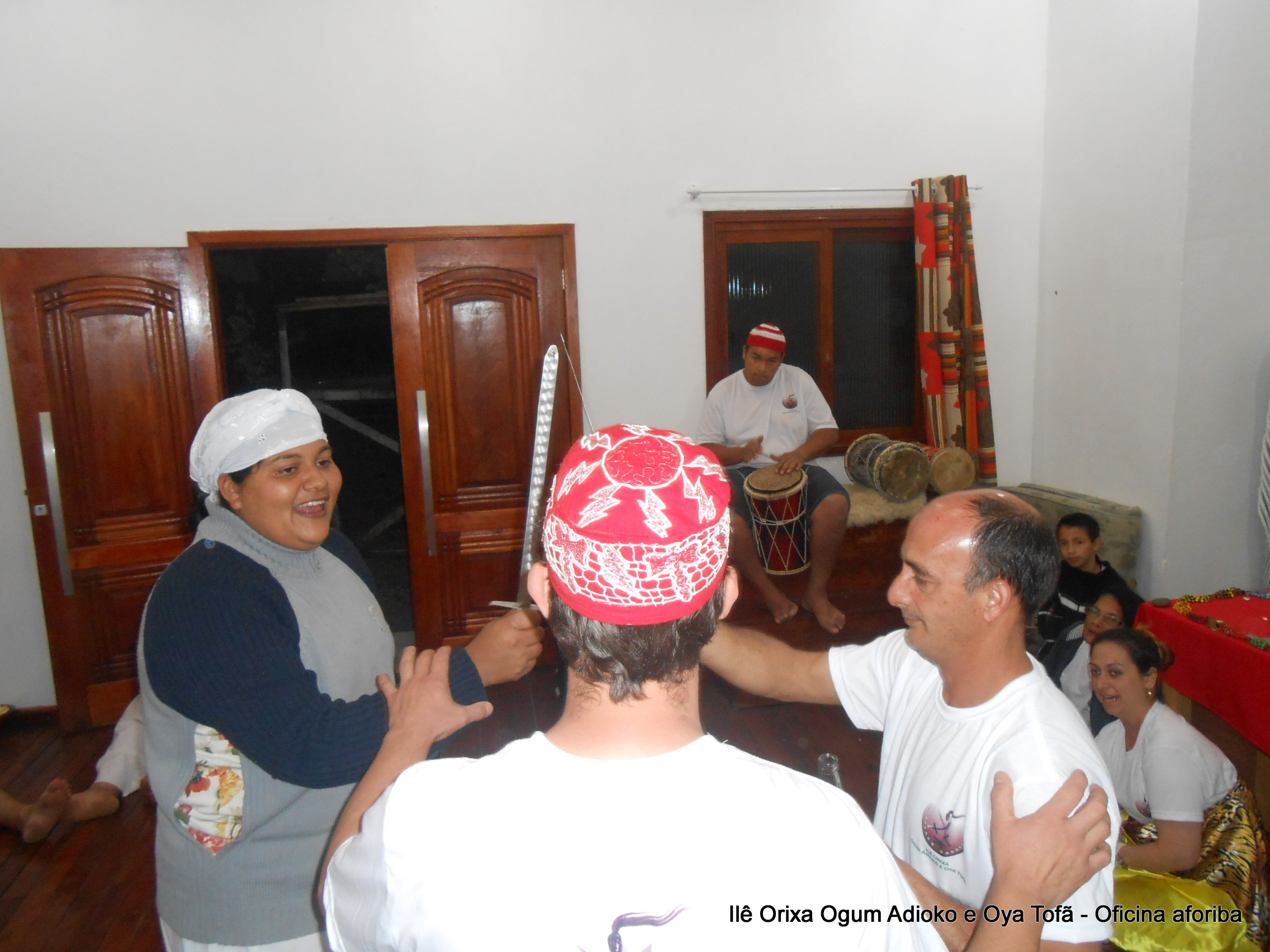Na tarde do dia 04/10 Pai Alexandre de Oya Tofã conduziu Oficina sobre o ritual do aforiba aos filhos do axé, com a finalidade de esclarecer a todos como este funciona e de que maneira deve ser realizado. O Ilê Orixá, um axé de Ogum com Oya sempre terá em seus toques este ritual, dai a necessidade de fazer com que todos os filhos do axé o compreendam e saibam como funciona.
