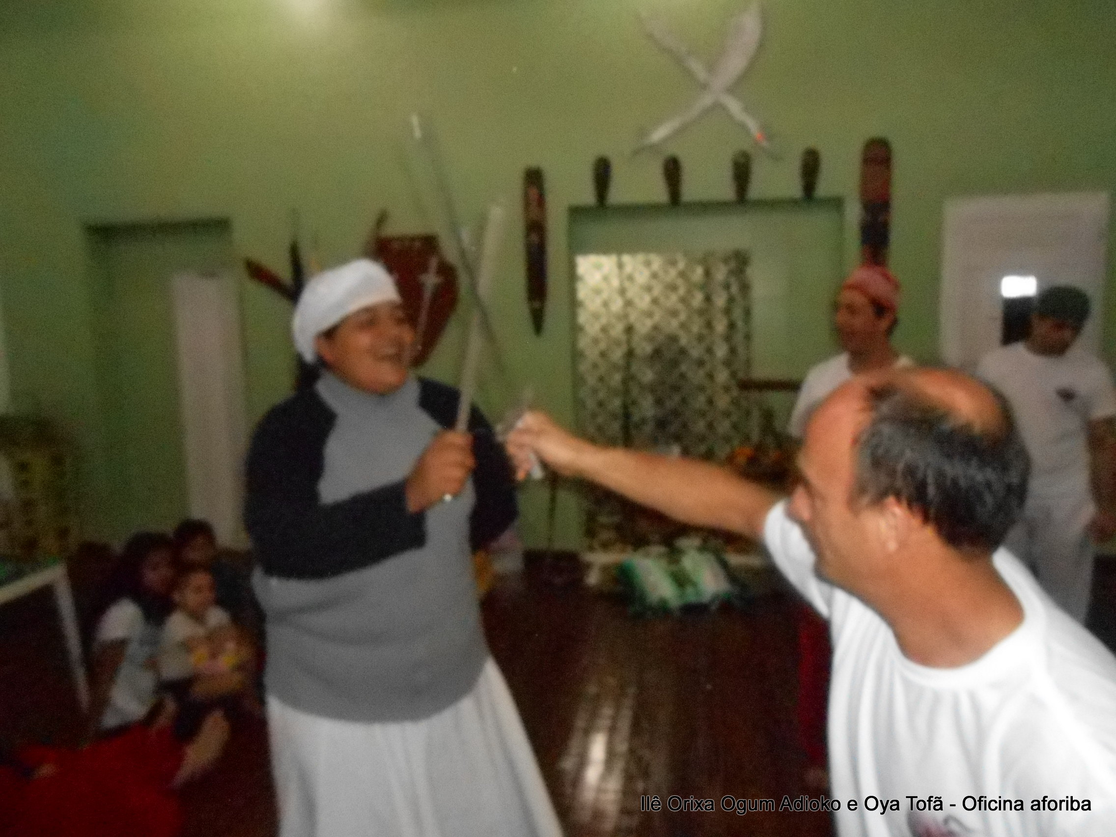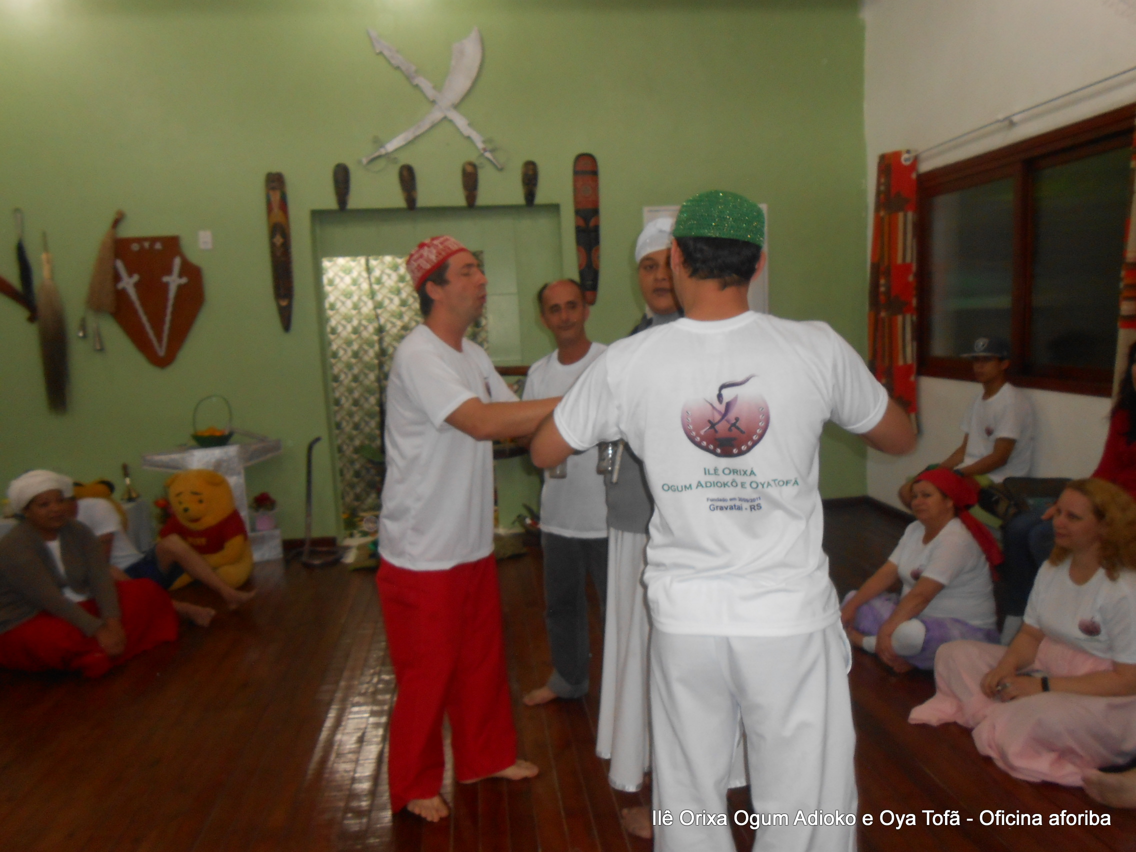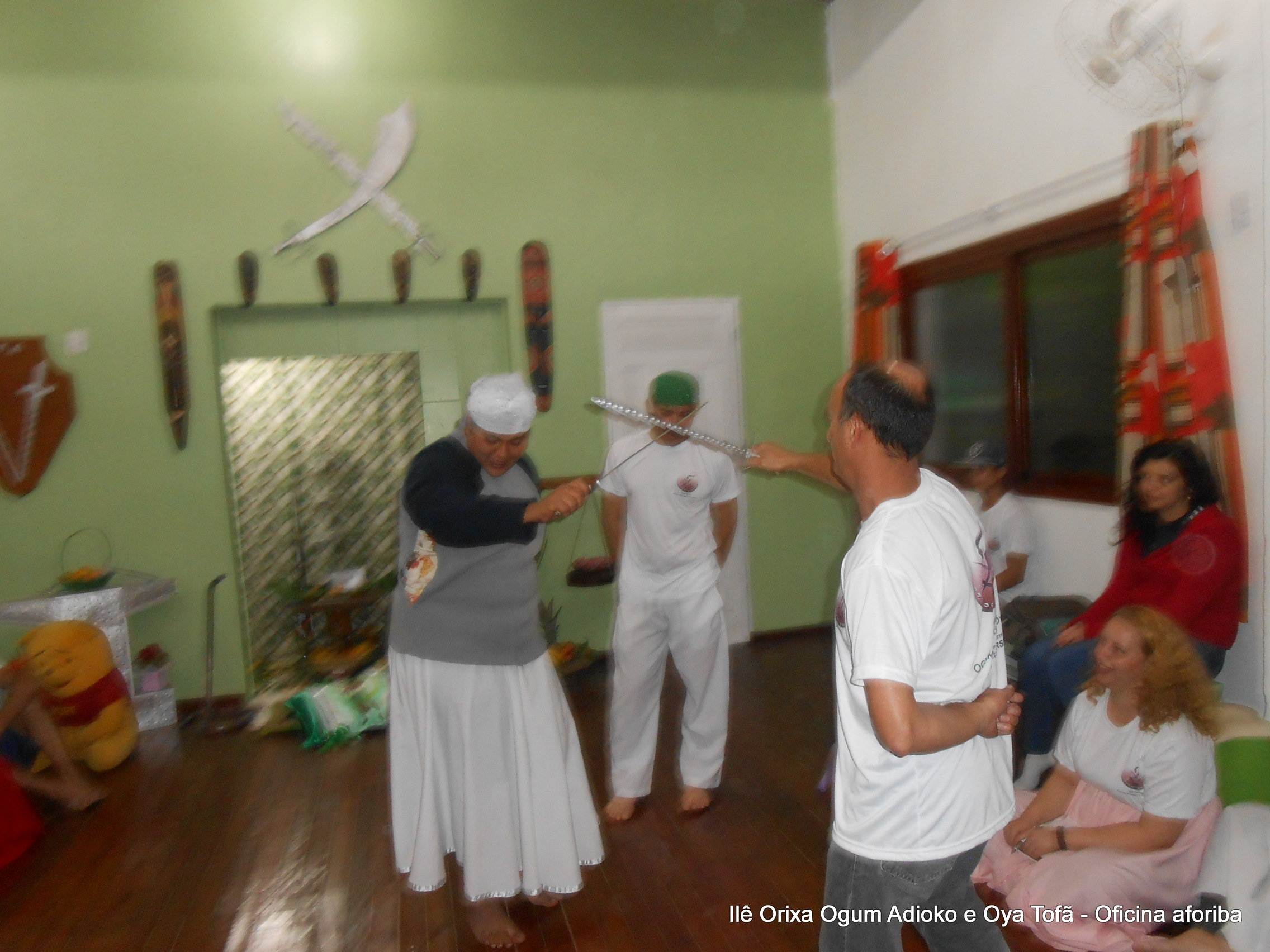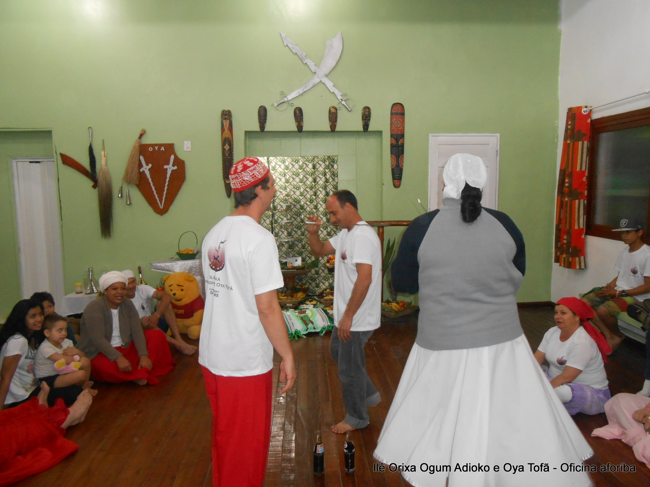 Na tarde do dia 04/10 Pai Alexandre de Oya Tofã conduziu Oficina sobre o ritual do aforiba aos filhos do axé, com a finalidade de esclarecer a todos como este funciona e de que maneira deve ser realizado. O Ilê Orixá, um axé de Ogum com Oya sempre terá em seus toques este ritual, dai a necessidade de fazer com que todos os filhos do axé o compreendam e saibam como funciona.