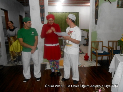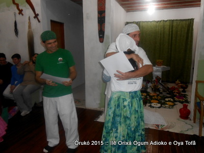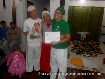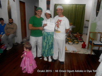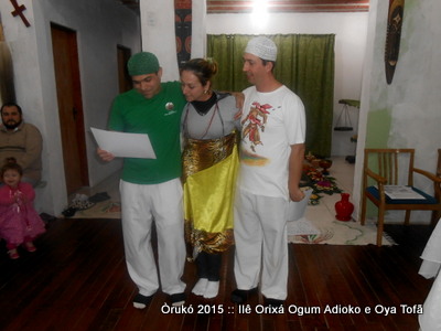 Mais um grupo de iniciados recebeu o seu òrukó no Ilê Orixá, no dia 10/07/2015, longe de estar fugindo da tradição do batuque do Rio Grande do Sul, estamos reafricanizando alguns conceitos, através do resgate da cultura africana dentro do terreiro. O nome africano, após consulta a Ifá nos dias 16/06 e 10/07 de 2015, por Pai Alexandre de Oya Tofã e Pai Ronie de Ogum ficou definido como: