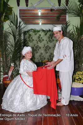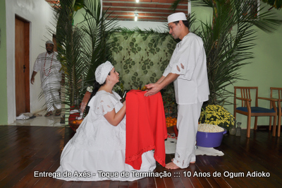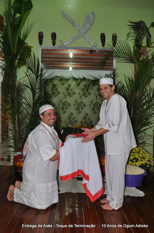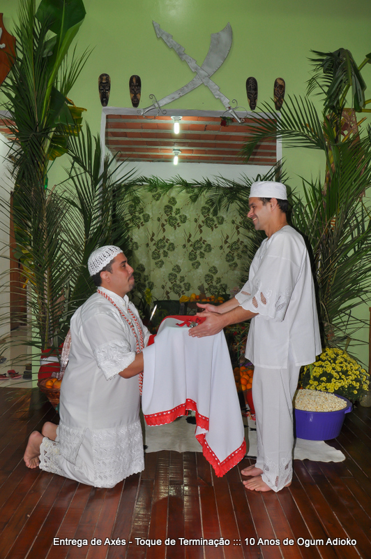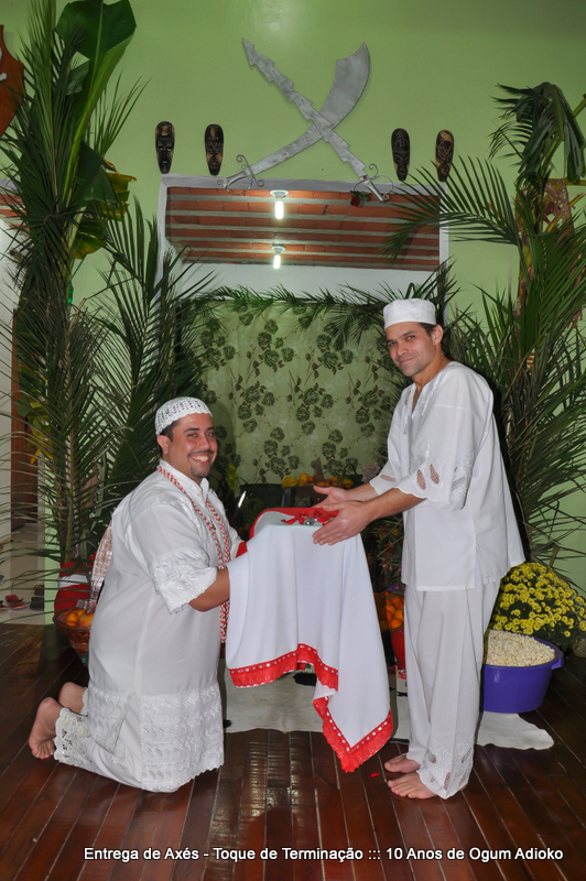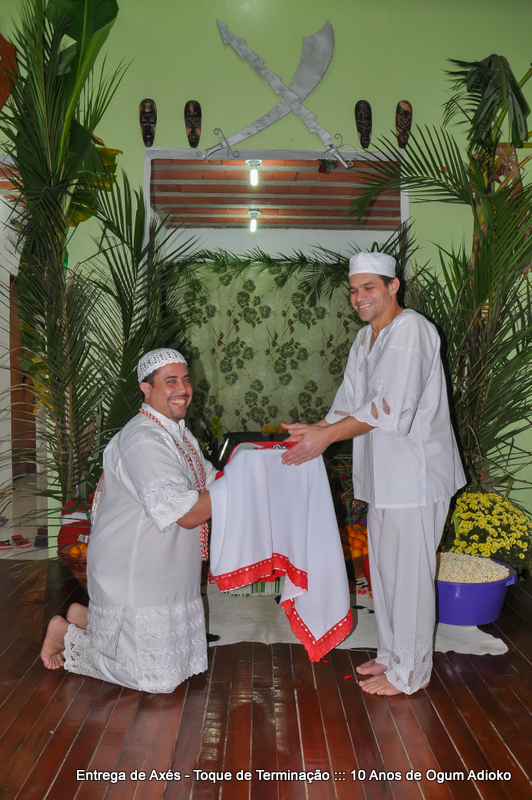 Pai Ronie de Ogum Adioko entregou na noite do dia 24/10 axés de obé aos primeiros filhos que se aprontaram dentro do Ilê Orixá, ocorrido em 08/10/2015, estendendo o axé de Ogum Adioko, a seus filhos, no Ilê Orixá uma casa de tradição africana de Ogum e Oya, sempre entrega axé de obé, como parte do assentamento do Orixá Ogum.