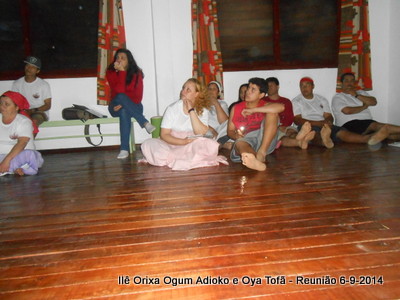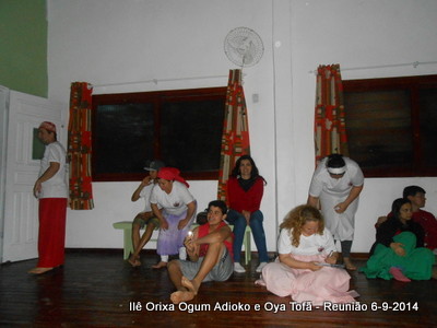 Após a reunião os filhos participaram de Oficina sobre axé de pena e coroação, para que todos do axé tenham condições de aprender e transmitir o aprendizado aos outros, o conhecimento não pode ficar centralizado, deve ser compartilhado.
