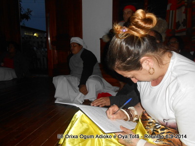 Ocorreu no dia 6/09/2014, a primeira reunião para a organização do Toque em Homenagem aos 9 anos de Ogum Adioko de Pai Ronie. Nesta ocasião definiu-se os filhos que iriam cumprir preceitos aos Orixás e as responsabilidades de cada um durante a obrigação.
