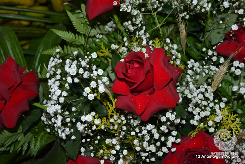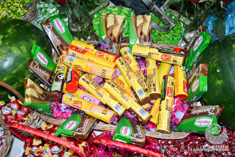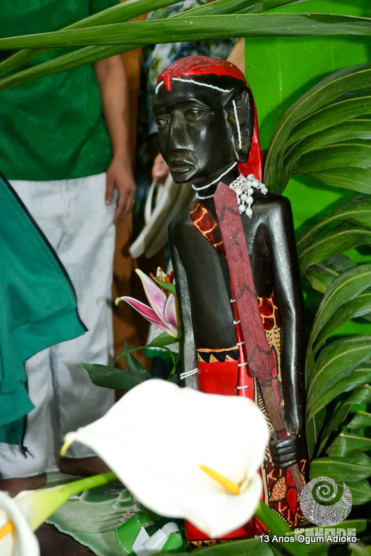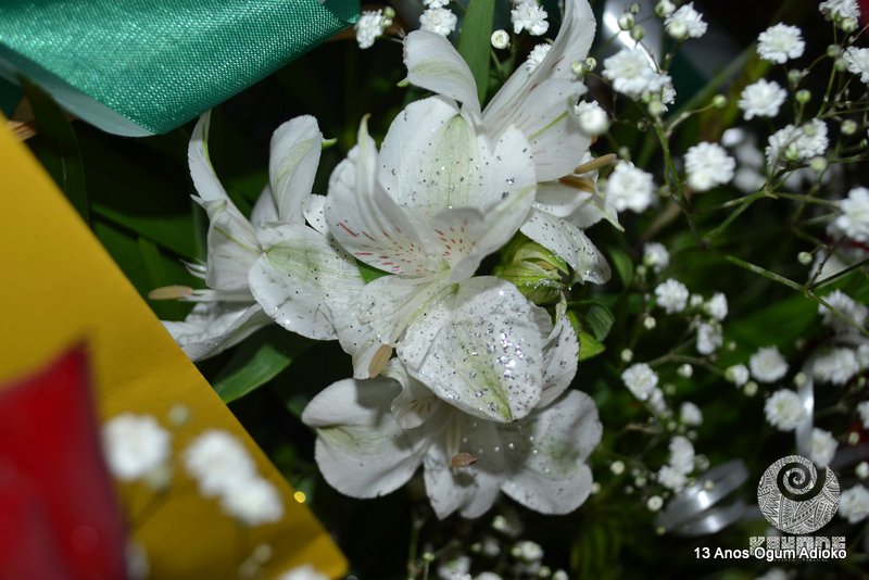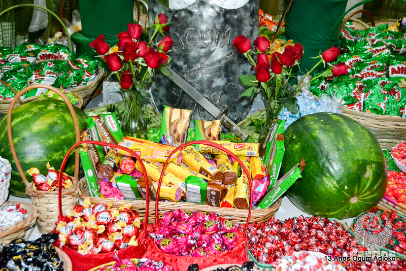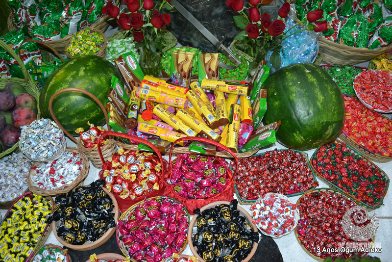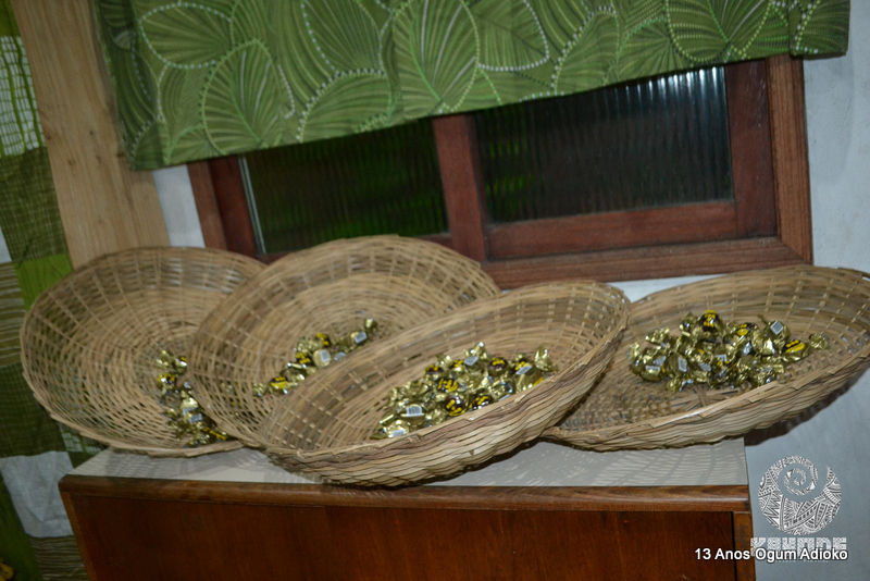 O quarto de santo estava em festa para a comemoração dos 13 anos de Ogum Adioko, que ocorreu no dia 27 de outubro, é costume a decoração e organização do espaço ser realizada por Pai Ronie, sempre na noite anterior, deixando para o dia apenas alguns detalhes necessários ou pequenos ajustes.
