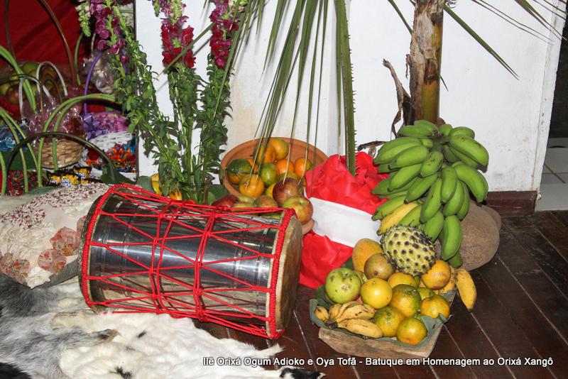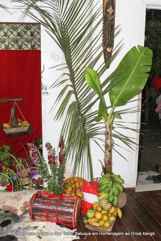Para esta obrigação a entrada do quarto de santo foi decorada com duas bananeiras grandes, assim como também realizada a ornamentação na rua. Estas bananeiras, após o batuque foram integradas as demais que já estão plantadas no terreno do Ilê Orixá, aumentando desta forma o axé de Xangô.