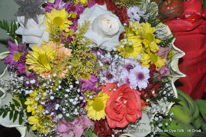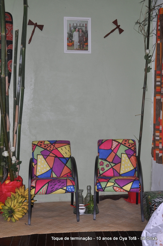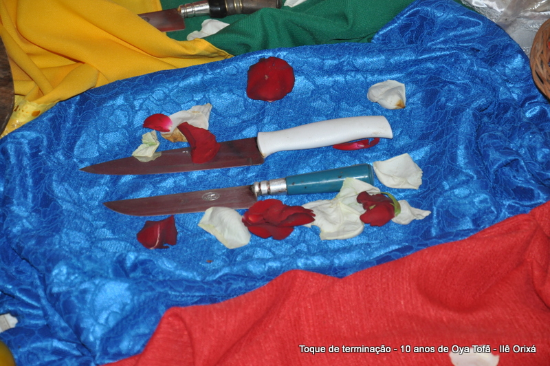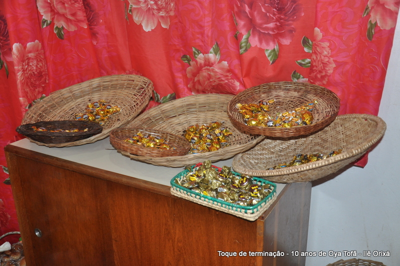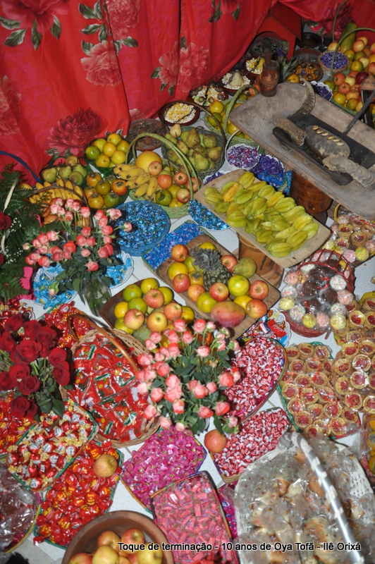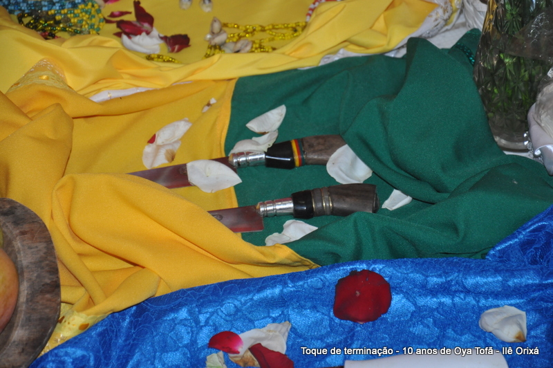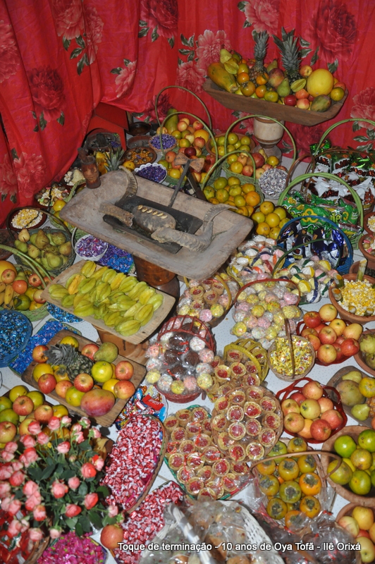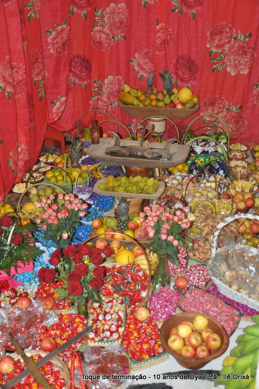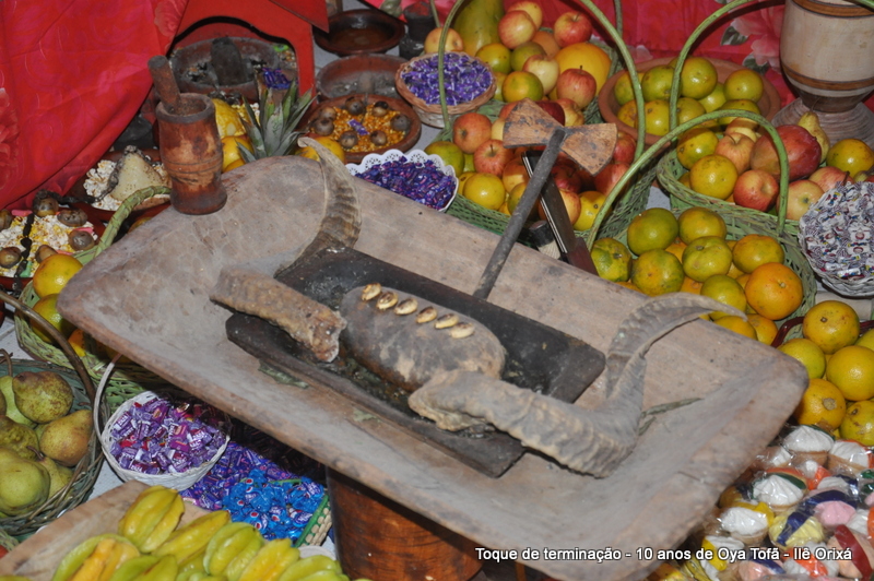O quarto de santo foi preparado para o toque de terminação e entrega de axés dos primeiros filhos de Pai Alexandre de Oya Tofã a receberem axés, o esperado por muitos era uma decoração em branco, mas foi o vermelho de Oya que prevaleceu em toda a decoração, seja pela cor dos doces, das frutas ou adornos que estavam presentes. O branco ficou restrito as roupas dos amigos e filhos, além de paredes do Ilê. O branco estava no coração de cada um que vê na religião dos orixás apenas formas de levar harmonia, paz de fazer o bem, ajudar e melhorar a vida de cada um que possui contato com a religião dos orixás.