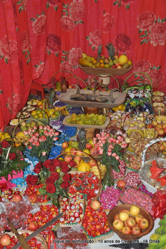 Que cada doce, fruta ou perfume que esteve presente nesta obrigação seja para levar caminhos de paz, de doçura, de conquistas e harmonia aos filhos e amigos que prestigiaram esta obrigação, e que o axé de todos os orixás sempre leve saúde e alegrias para a casa de cada um.