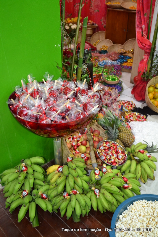 Os doces todos ao serem distribuídos levam o axé de todos os orixás aos que estão na festa, como condutores de axé direto de cada orixá, por isso sempre importante valorizar tudo o que se recebe do sagrado, não importa se é um belo doce, uma folha ou apenas um carinho, tudo é axé.