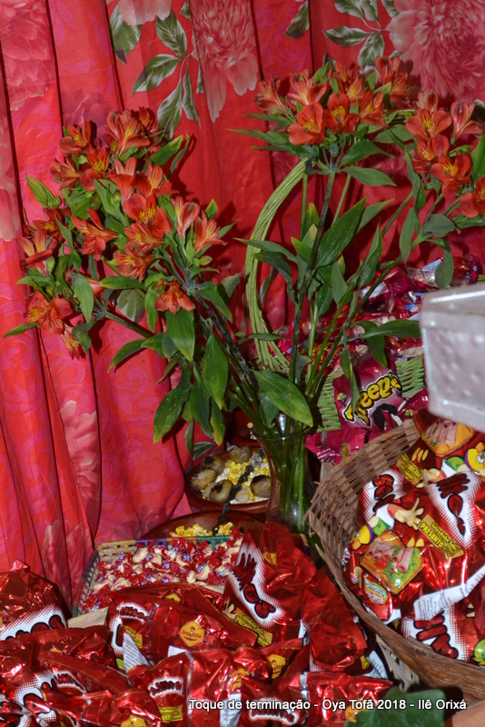 Na noite de 7 de abril deste ano, o Ilê Orixá estava e festa para comemorar mais um aniversário e Oya Tofã de Pai Alexandre e a para fazer a entrega de axés para alguns filhos, e para a noite de festa o quarto de santo estava cuidadosamente decorado. O quarto de santo é sempre um local de muito carinho por todos, pois é o local onde sacralizamos para nossos orixás, é onde nossos orixás recebem suas oferendas e é onde em dia de festa coloca-se os doces que serão distribuídos na noite.