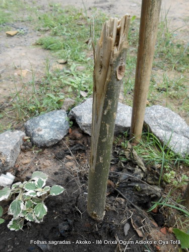 Antes de ser plantada a muda de akoko foi deixada em água para desenvolver raízes, para isso ficou inicialmente no quarto de santo, foram dois os galhos recebidos, e um deles brotou em nosso Ilê, após mais de 60 dias na água. Por ser uma planta proveniente de regiões quentes, se torna difícel o seu plantio no sul do Brasil, mas que este ano, devido ao calor foi possível que se obtivesse sucesso no plantio. Que seja para brotar axé de alegria, axé de prosperidade, saúde e conquistas a todos aqueles que precisarem e buscarem esta ajuda no Ilê Orixá.