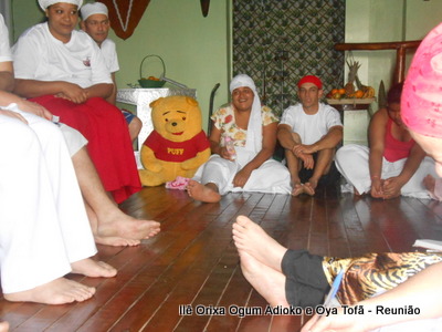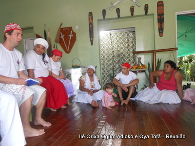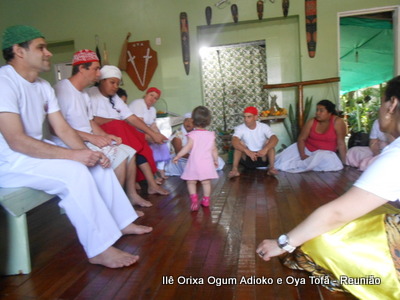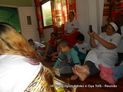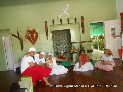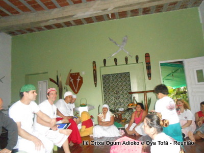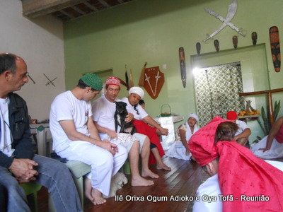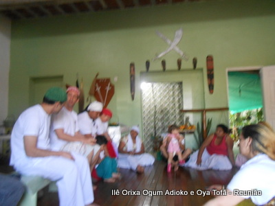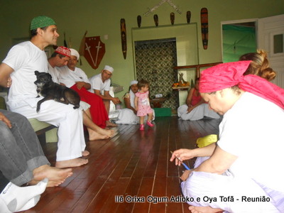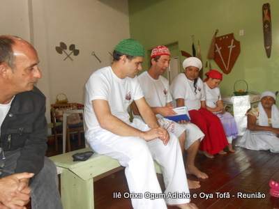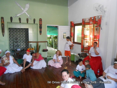 Esta reunião foi conduzida por Pai Ronie de Ogum e Pai Alexandre de Oya. Logo após a reunião ocorreu oficina sobre o “Ritual do Aforiba“, com o objetivo de ensinar aos filhos do axé de que maneira deve ser conduzido este ritual.
