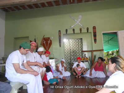 Os filhos do axé reuniram-se na tarde do dia 4 de outubro para os últimos ajustes necessários para o Toque em Homenagem ao Orixá Ogum Adioko e obrigação de filhos. Foi um momento de determinar o que ainda faltava para que a obrigação ocorresse com êxito, além de organizar a obrigação e o batuque do dia 18/10.