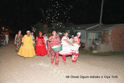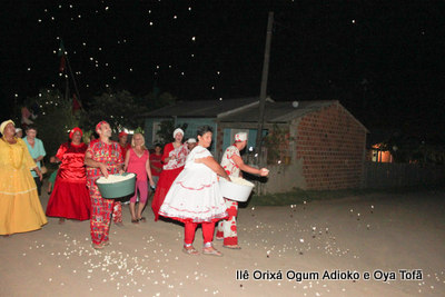 Na noite do dia 15 de dezembro, filhos do axé, acompanhados de Pai Alexandre de Oya e Pai Ronie de Ogum deram início a cerimônia de Homenagem aos Orixás Oya e Xangô, cumprimentando inicialmente ao Orixá Bará na rua.
