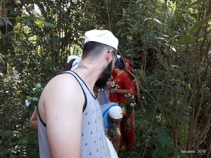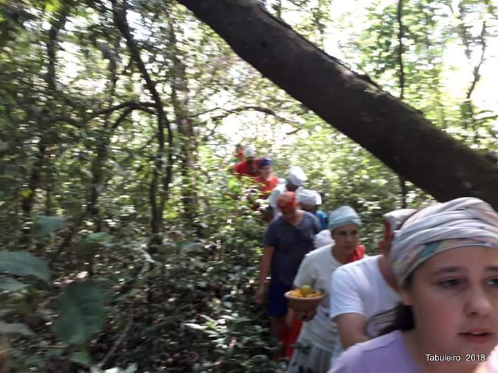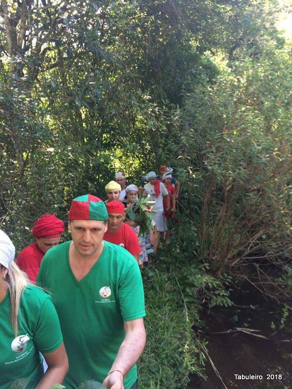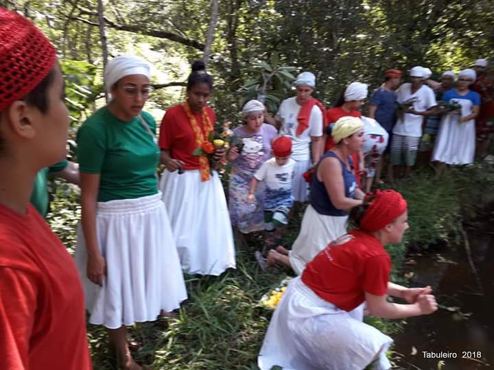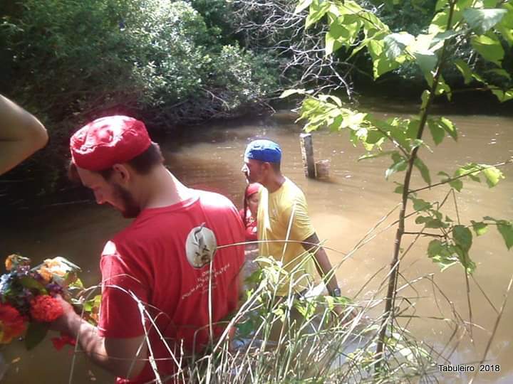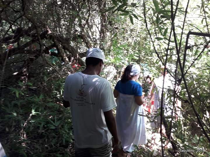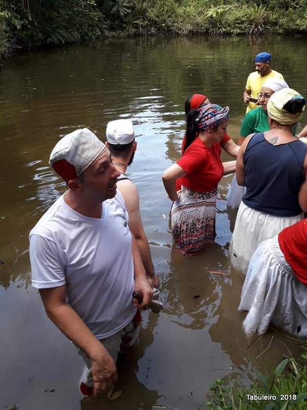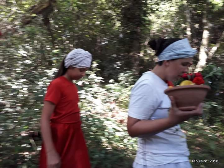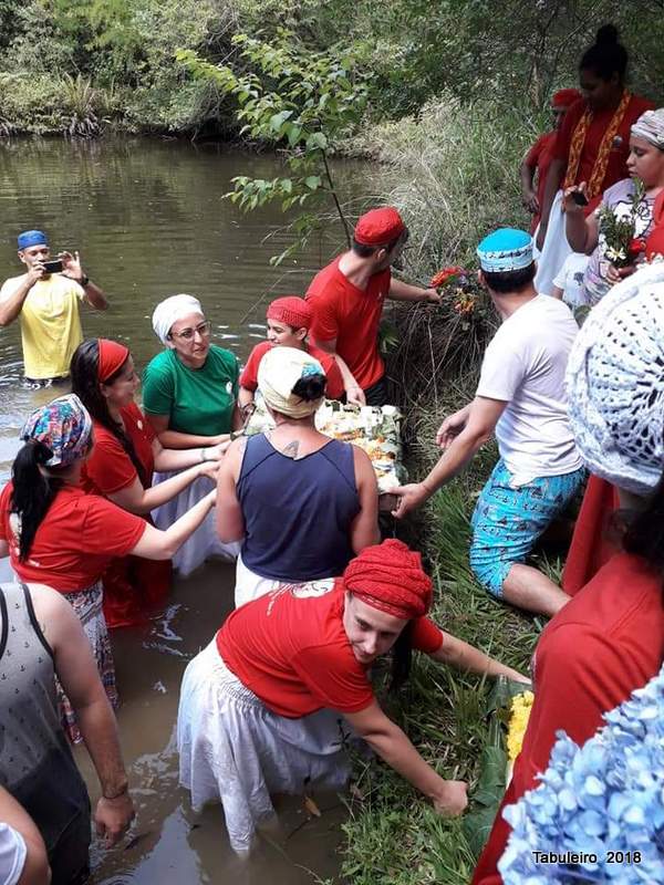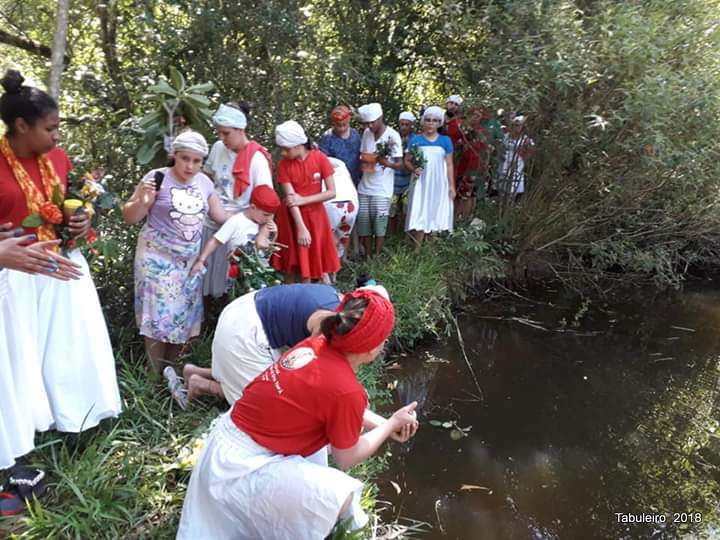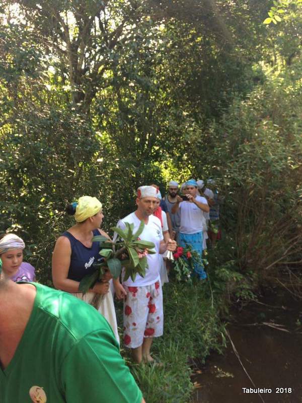 Para a construção do tabuleiro são utilizados somente materiais biodegradáveis e o suporte é produzido em madeira que após alguns dias é retirado da água, evitando gerar poluentes para o local. Na ocasião além do tabuleiro foi entregue também na mata axé para Oya e Ogum.