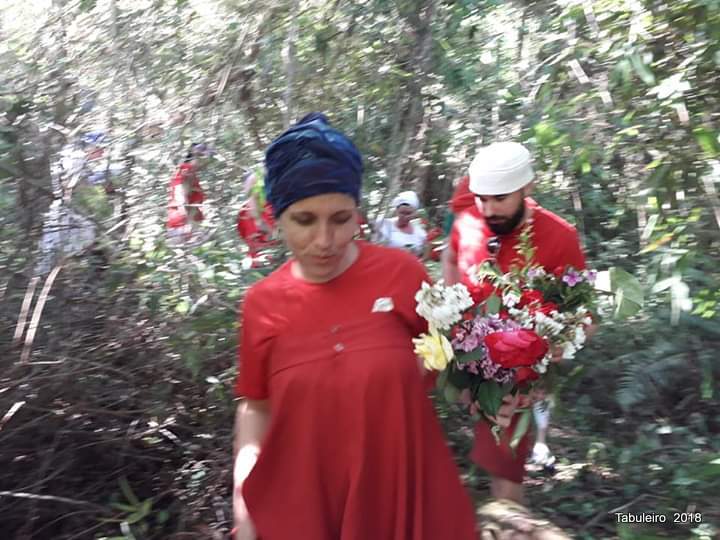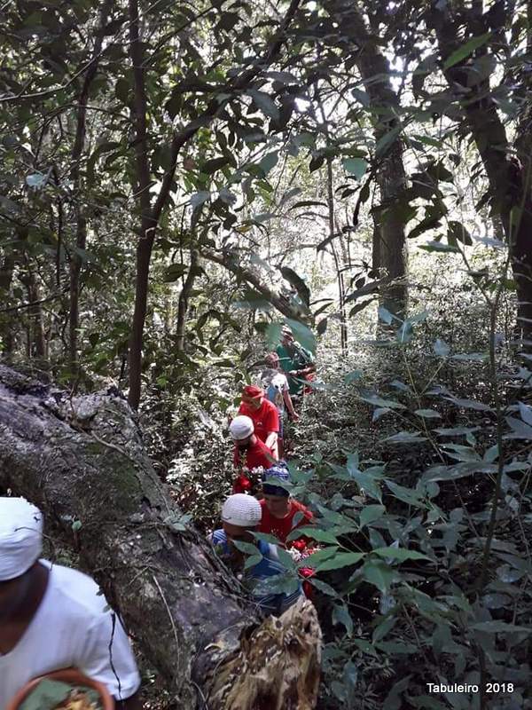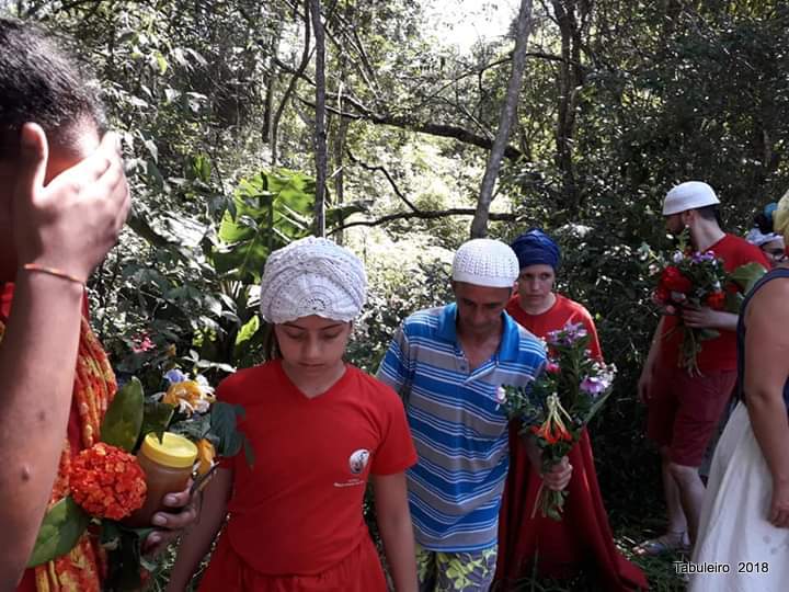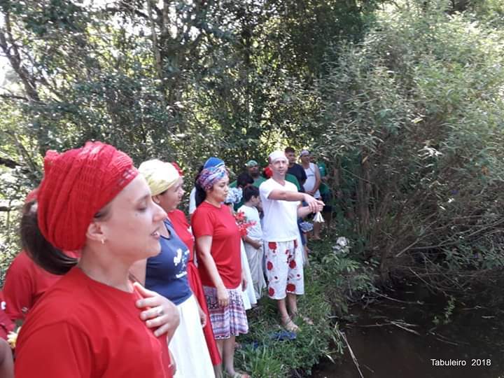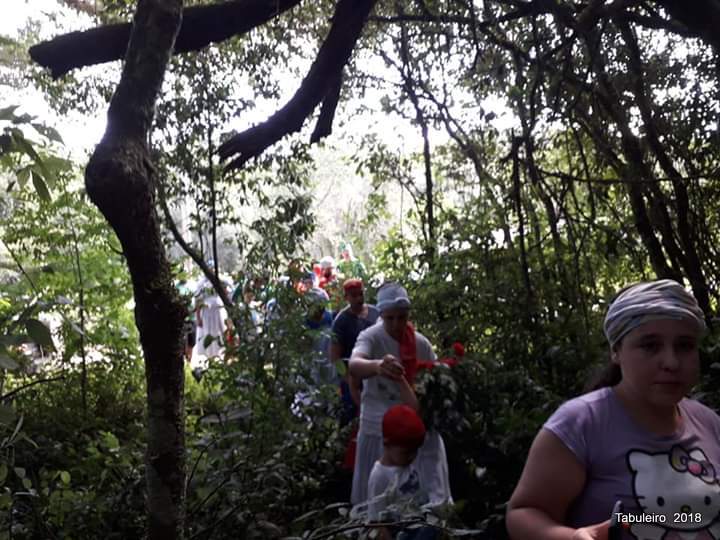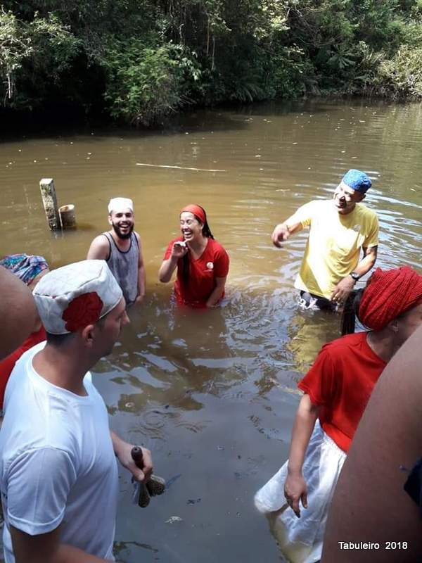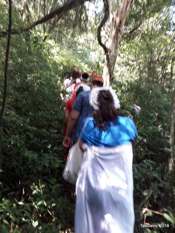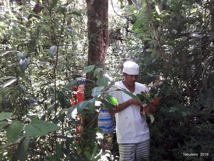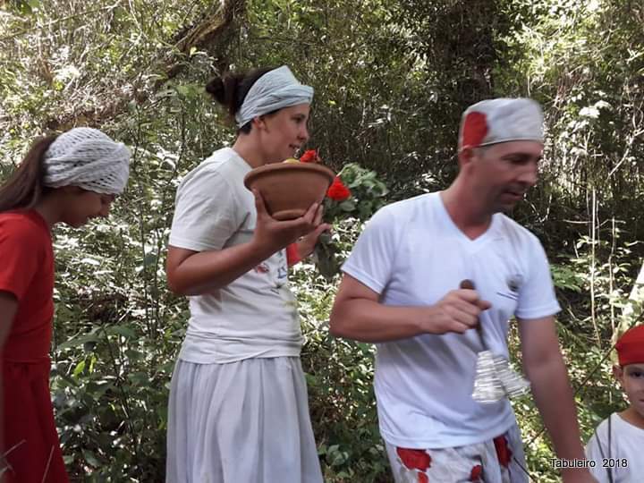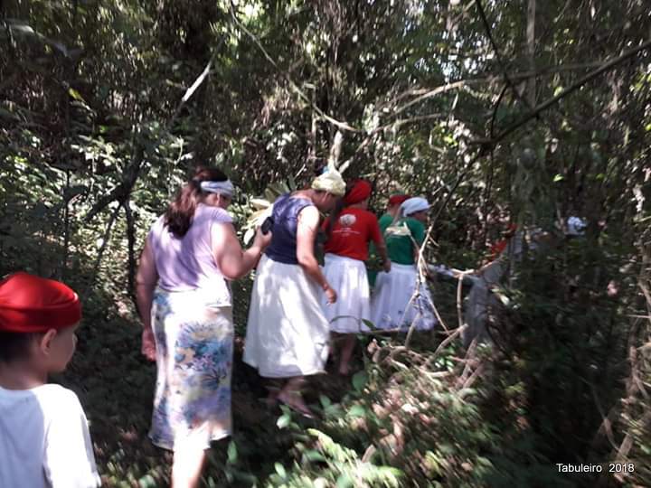 Para a construção do tabuleiro são utilizados somente materiais biodegradáveis e o suporte é produzido em madeira que após alguns dias é retirado da água, evitando gerar poluentes para o local. Na ocasião além do tabuleiro foi entregue também na mata axé para Oya e Ogum.