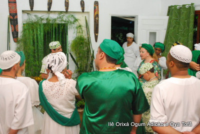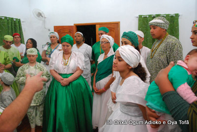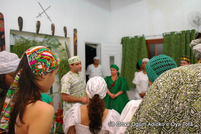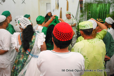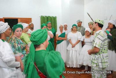 Um pouco antes de iniciar o Toque em Homenagem aos 8 anos do Orixá Ogum Adioko, Pai Ronie de reuniu os filhos do axé para dar as últimas orientações da obrigação, que iria iniciar em poucas horas. Orientações de como receber os convidados, os amigos, de como servir, de que maneira iria ocorrer a obrigação.