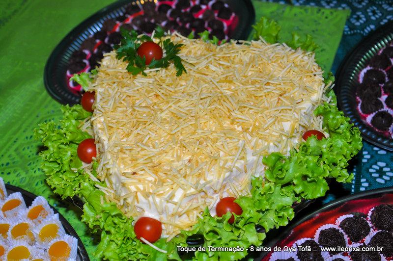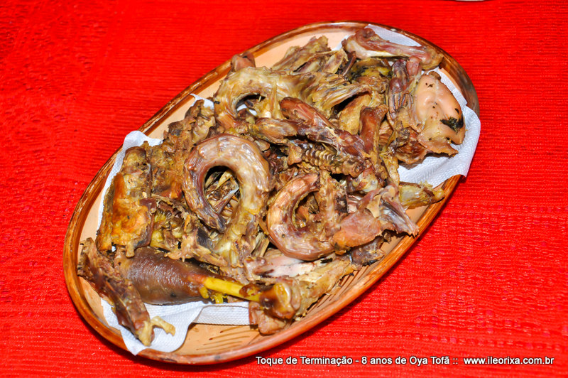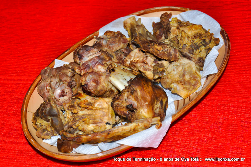 São servidas nas festas aos orixás além de doces, alimentos salgados que são preparados com os animais sacralizados durante os ritos religiosos, dai a importância do cuidado correto e adequado com a carne destes animais que após ser limpa e temperada será utilizada nos mais variados tipos de alimentos, que variam de acordo com a casa.