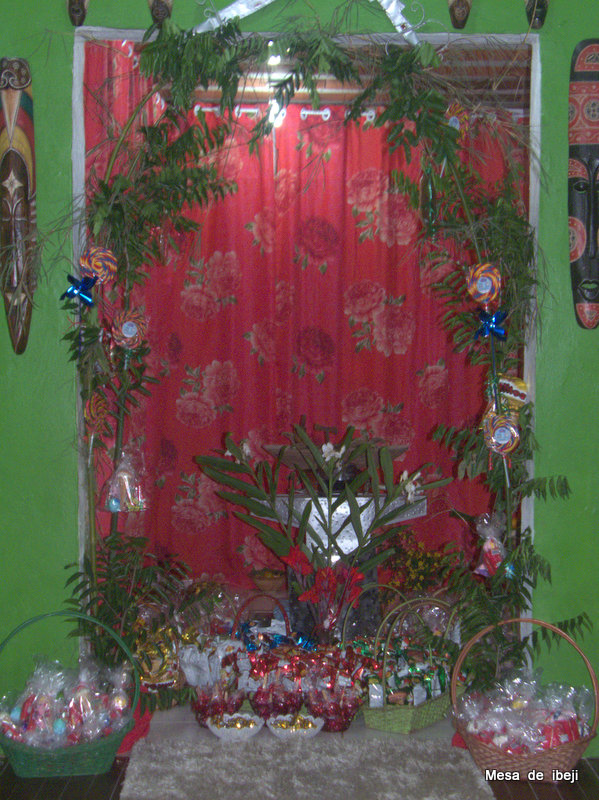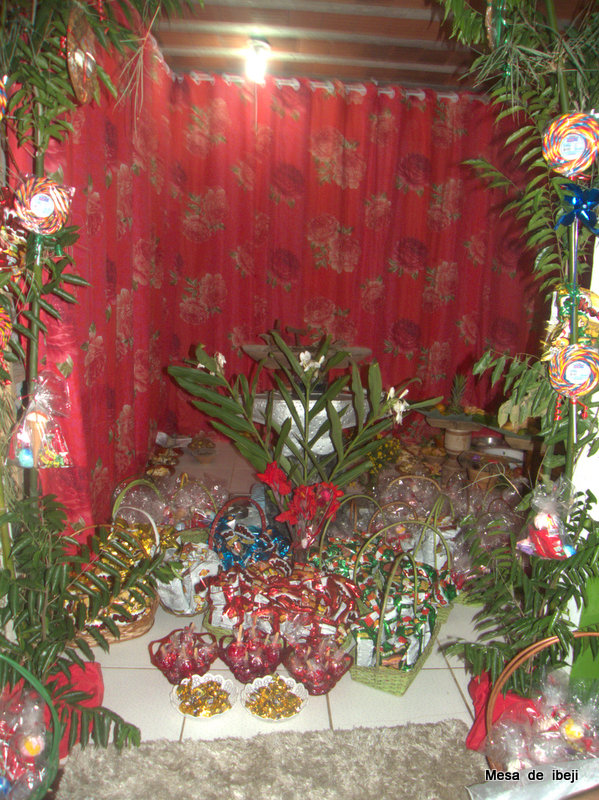 O quarto de santo, ou peji, é um local sagrado, por isso sempre se organiza ele com cuidado, co carinho e zelo. A decoração para a mesa de Ibeji do último dia 31 de março foi em vermelho, pois fazia parte das comemorações da obrigação de Oya Tofã de Pai Alexandre.
